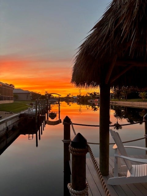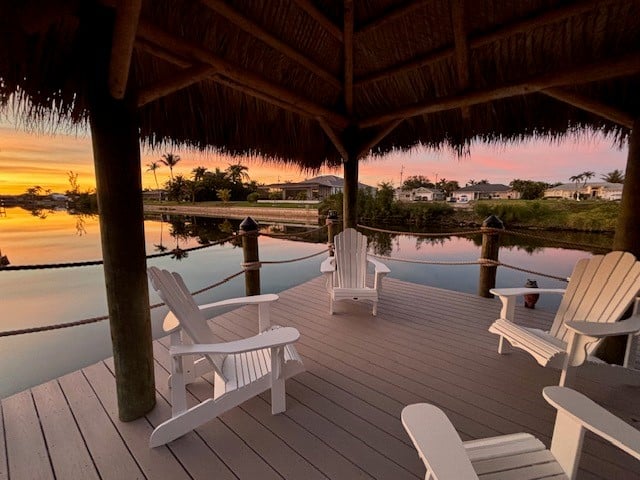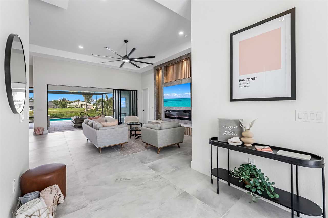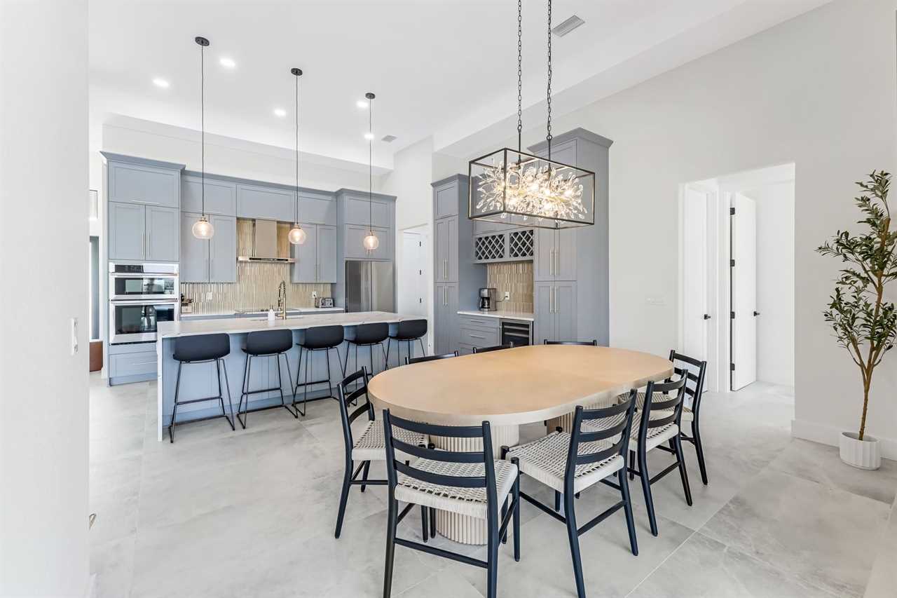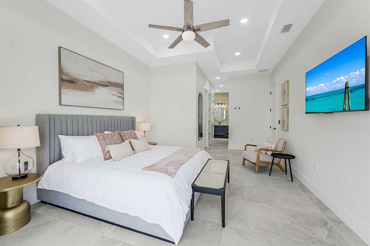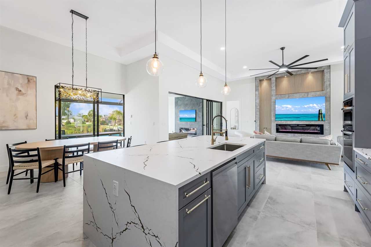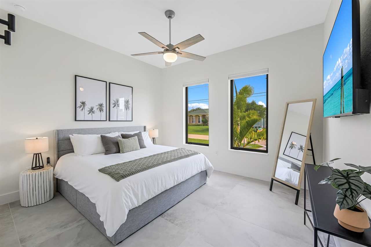 Welcome to your dream vacation at this luxurious waterfront villa in Southwest Cape Coral. Perfectly positioned on a saltwater canal and just a five-minute drive from vibrant Cape Harbour, with upscale dining and shopping, this high-end family-friendly villa offers everything you need for an unforgettable stay in a convenient location. This vacation home offers spacious and luxurious accommodations. Spread out with 5 elegantly appointed bedrooms and 4 modern bathrooms, including three private suites, this property ensures comfort and privacy for all guests. Dive into luxury in the electric heated saltwater pool or unwind in the spa. Both offer a perfect escape under the Florida sun, with stunning views over the canal. Experience the best of indoor and outdoor living with a fully equipped outdoor kitchen, perfect for entertaining, watching the streaming outdoor Smart TV or having a family BBQ. Enjoy the canal views from the newly built dock, great for guests wanting to dock their own boat or rent one locally. (please note the boat lift is unavailable). Inside, the villa boasts a stylish, fully equipped gourmet kitchen with state-of-the-art appliances and elegantly furnished décor with a mid-century modern Scandinavian vibe. There is entertainment for everyone. Engage in endless fun in the garage converted game room equipped with a foosball table, Pac-Man arcade games, a pinball machine, and a football toss game. Outdoor activities are also covered with four bikes and a variety of pool floats available for guest use. Catering to families, this villa is equipped with everything a family may need. Included is a children's pack and play, highchair, and a selection of toys and books. The older children will find endless enjoyment in the garage converted game room. This home has all the amenities, making it easy for everyone, from toddlers to teens, to feel at home. Need to stay connected? The home includes a dedicated office space, with high-speed internet and WIFI, allowing you to work remotely in a quiet and comfortable setting. Peach Paradise promises a luxurious escape with all the comforts of a high-end resort combined with the privacy and convenience of your own home. Whether you're looking to relax poolside, unwind in the spa, or simply enjoy quality time with family, this Cape Coral gem has it all. Sleeping Arrangements: 1st Master Bedroom - King Suite 2nd Master Bedroom - King Suite 3rd Bedroom - Queen Suite 4th Bedroom - Queen 5th Bedroom - 2 sets of Twin Bunks 1st King Master Bath: Dual Vanities Walk in Shower 2nd King Master Bath: Tub/shower Combo Single Vanity Queen Suite Bath: Walk in Shower Single Vanity Guest Bath: Walk in Shower Single Vanity Access to Pool Deck ​​​​​​​ Outdoor Amenities: Electric Heated Saltwater Pool and Spa 4 Adult Bicycles 2 Children Helmets 1 Schwinn Bike Trailer 2 Small Child Size Helmets 1 Adult Helmet Northern Exposure Gulf Access Saltwater Canal Over-sized Pool deck Outdoor Kitchen with BBQ Grill Outdoor Refrigerator and Sink Pool Alarms on Slider doors Inflatables for Pool Outdoor Ceiling Fan Ample Outdoor Seating/Loungers Huge Outdoor Smart TV Dock with Tiki Hut (boat lift not available) Converted Garage to Game Room: Foosball Table Pac Man Arcade Game Legends Pinball Game Football Toss Game Portable Fan General Amenities: Extra Linens and Towels Provided Washer and Dryer Fully Equipped Kitchen Hair Dryer Iron and Ironing Board Ceiling fans Chair in Study Fully Reclines Shampoo, Conditioner and Body Wash in Each Shower Amenities for Young Children: 2 Pack-N-Plays Highchair Booster Seat Children dinnerware and utensils Bibs Children Toys Children Books White Noise Sound Machine Electronics: Huge Flat Screen Smart TV in Living Room Smart TVs in all bedrooms (except in bunk bedroom) Smart TV on Lanai Wireless High-Speed Internet and WIFI * This property has exterior cameras - 2 cameras on pool deck and 2 cameras in front driveway * Garage not available for parking due to game room, but please feel free to use the ample driveway space for your vehicle. * ABSOLUTELY NO PARTIES and all guests and visitors, not in the booking, must be approved by property manager. The property rates include up to 6 guests. Each additional guest will incur a small fee. Please make sure to enter an accurate guest count at time of booking for accurate reservation cost. Electric charge/damage insurance: A prepaid electric charge and damage insurance is included in your reservation. Trash pickup is early Tuesday morning; garbage cans must be taken down to end of driveway on Monday night. There is a $50 fine if garbage cans are not taken down on garbage day