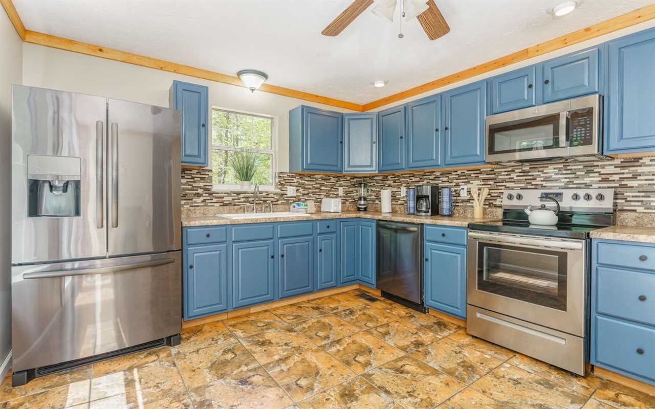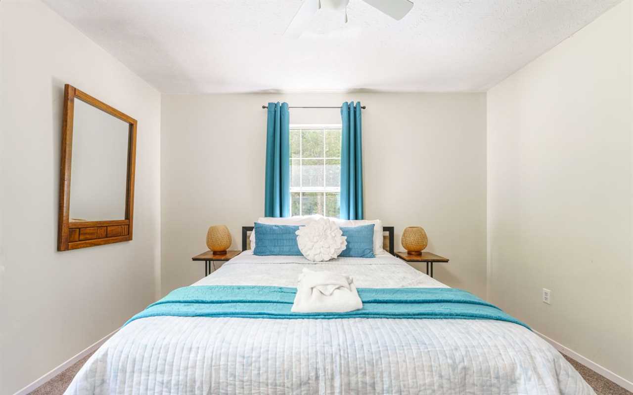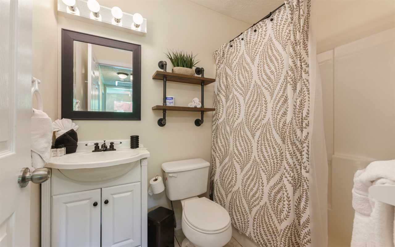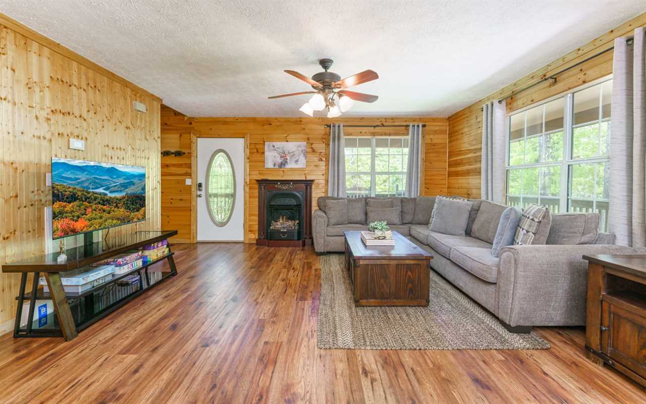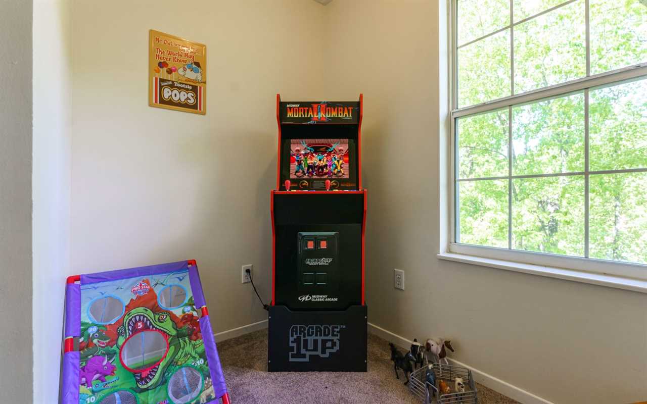Inside, the spacious living room is the perfect place to unwind after a day of exploring. Cozy up by the gas fireplace and enjoy your favorite movie or show on the 50” Smart/Cable TV. For some friendly competition, challenge your loved ones to a game on the Mini Mortal Kombat Arcade Game or choose from a variety of board games.