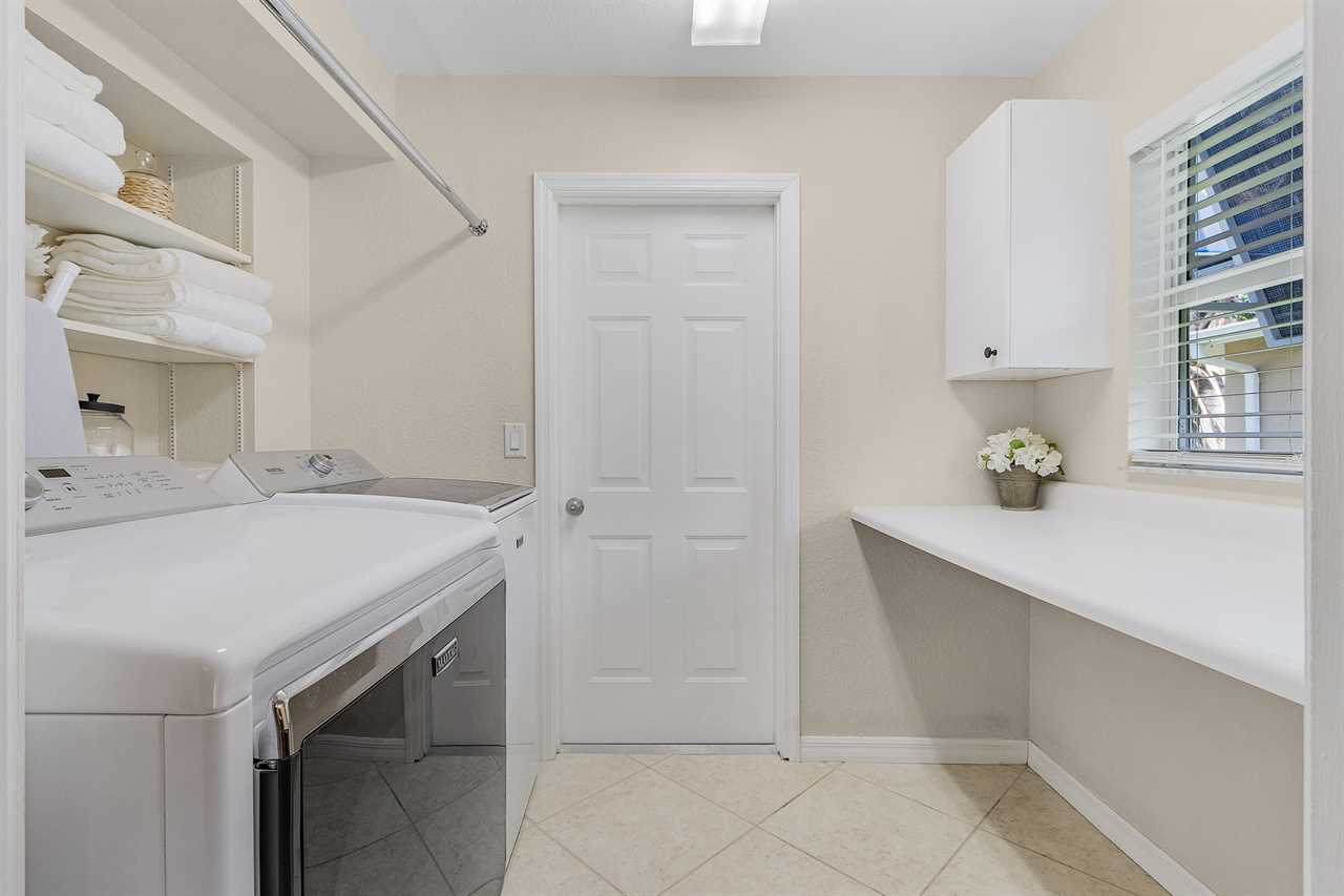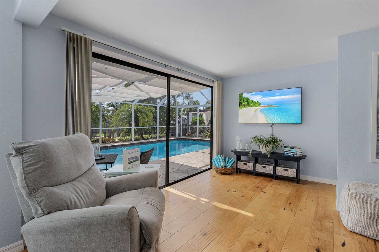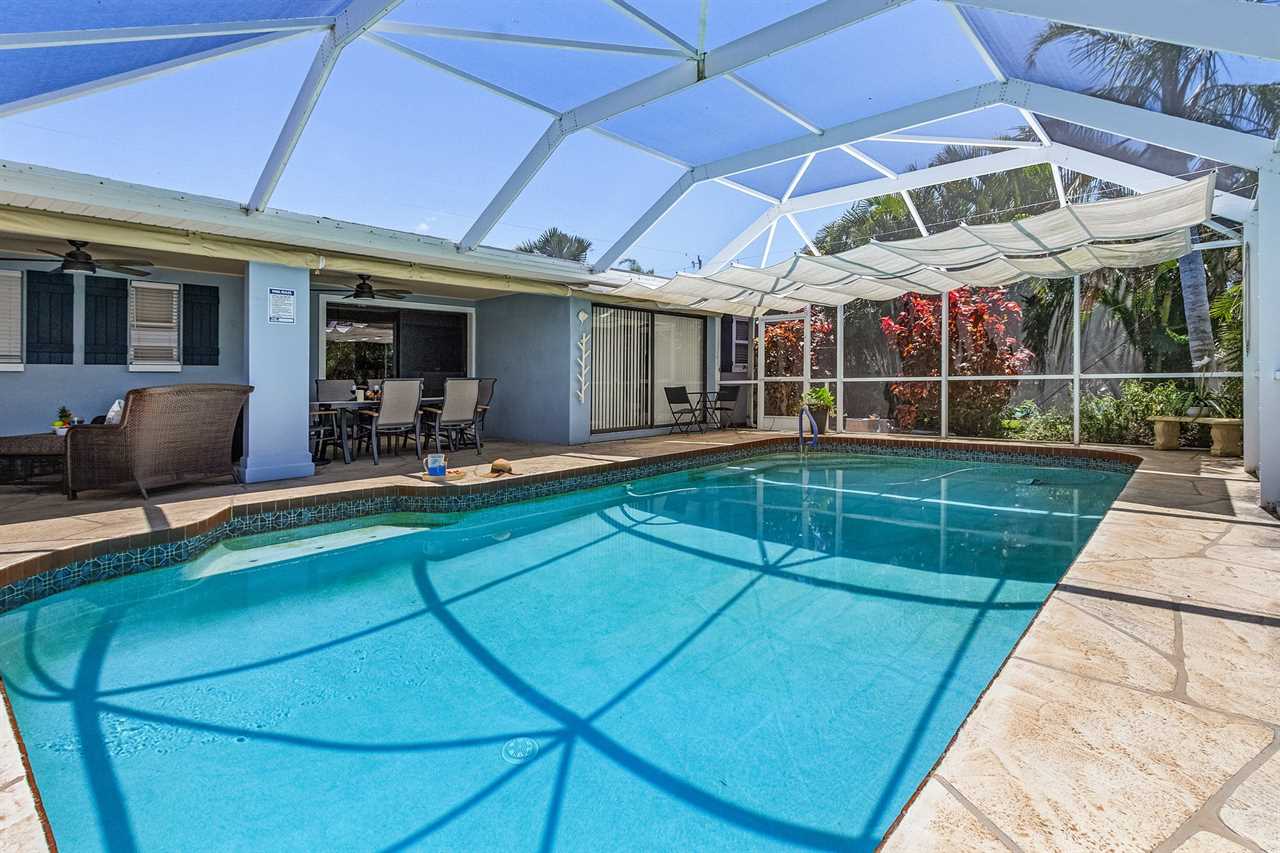 Step outside to your own private paradise. The large heated saltwater pool takes center stage, surrounded by a tastefully landscaped terraced backyard for privacy and tranquility. Lounge with a book, float in the pool, or soak up the Florida sunshine. Pool floats are included for added fun!