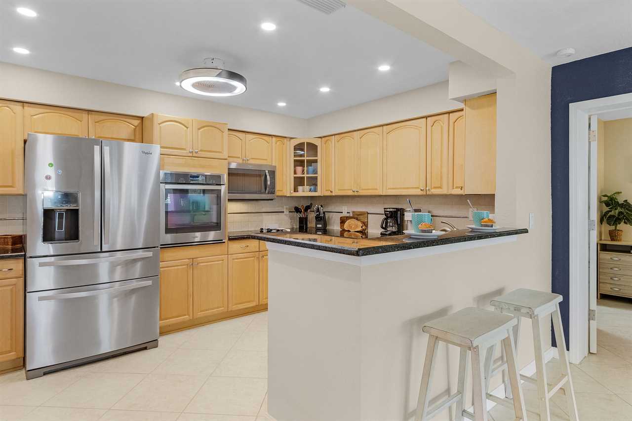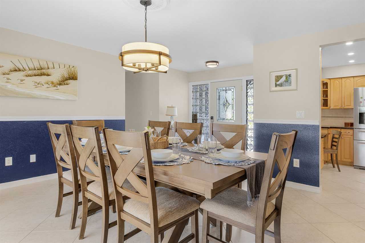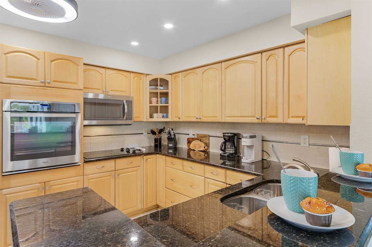 The heart of the villa is its fully stocked kitchen featuring granite countertops and stainless steel appliances. Whether whipping up a family breakfast, packing snacks for a beach day, or preparing a feast, you'll have everything you need. The open layout seamlessly connects the kitchen, dining, and living areas, making entertaining a breeze.