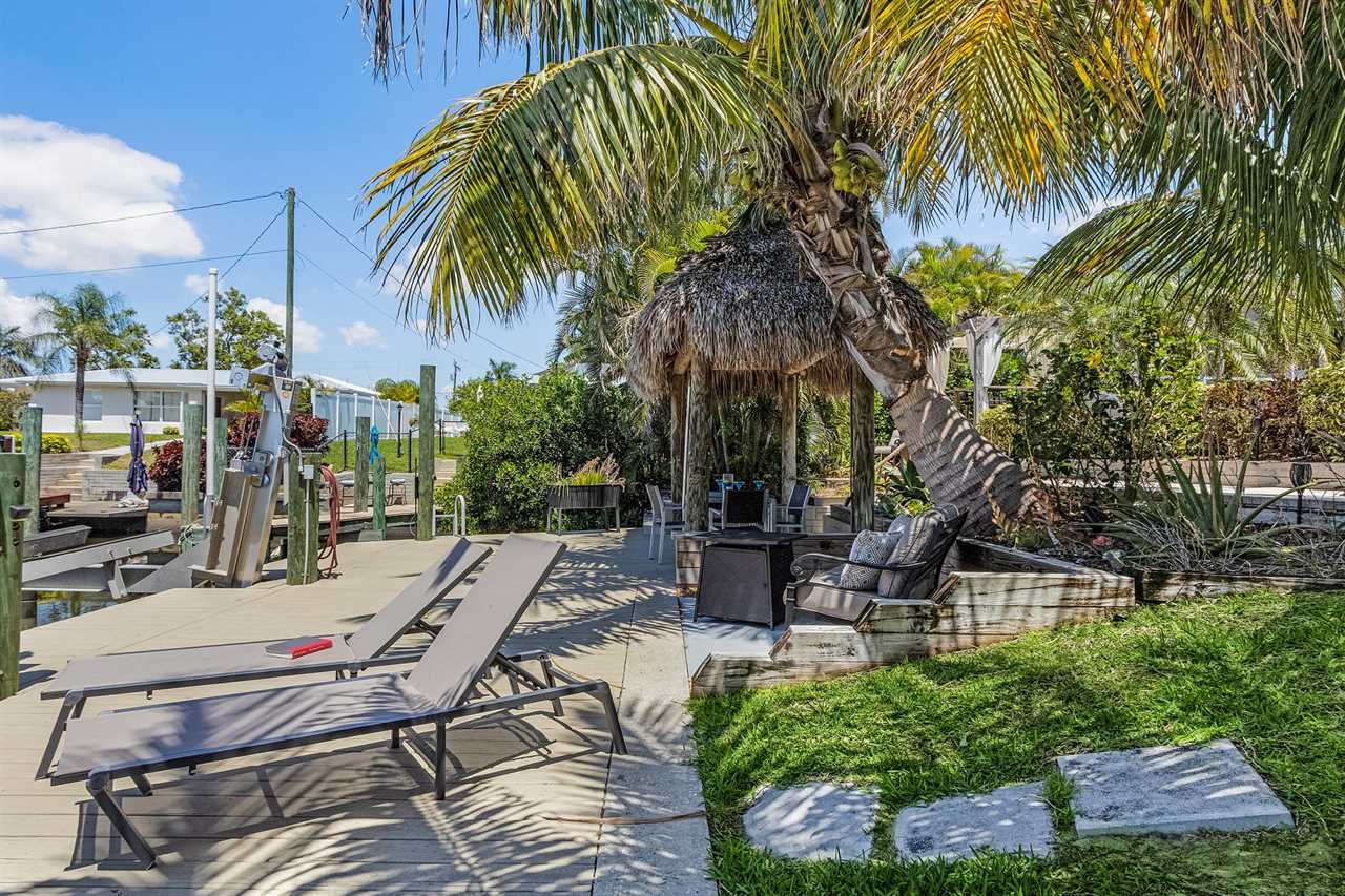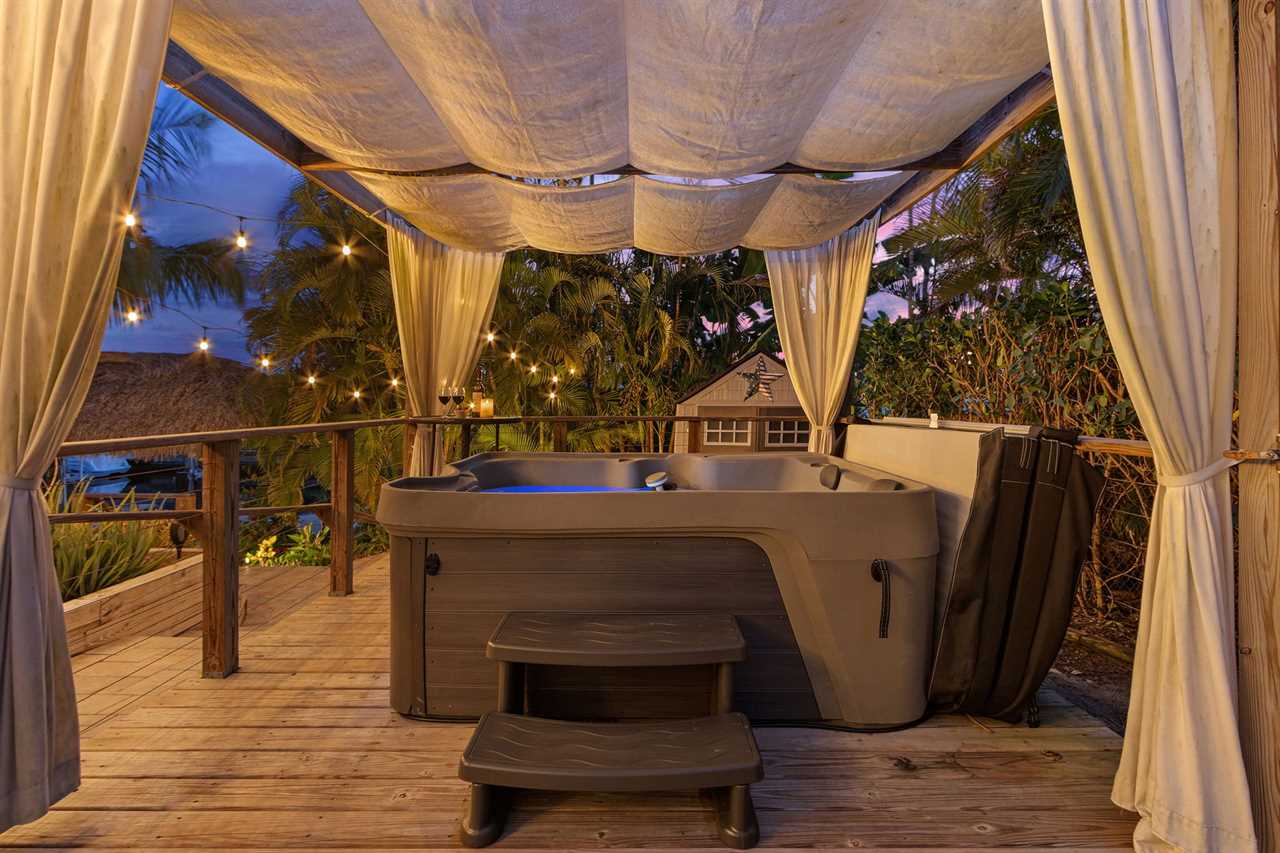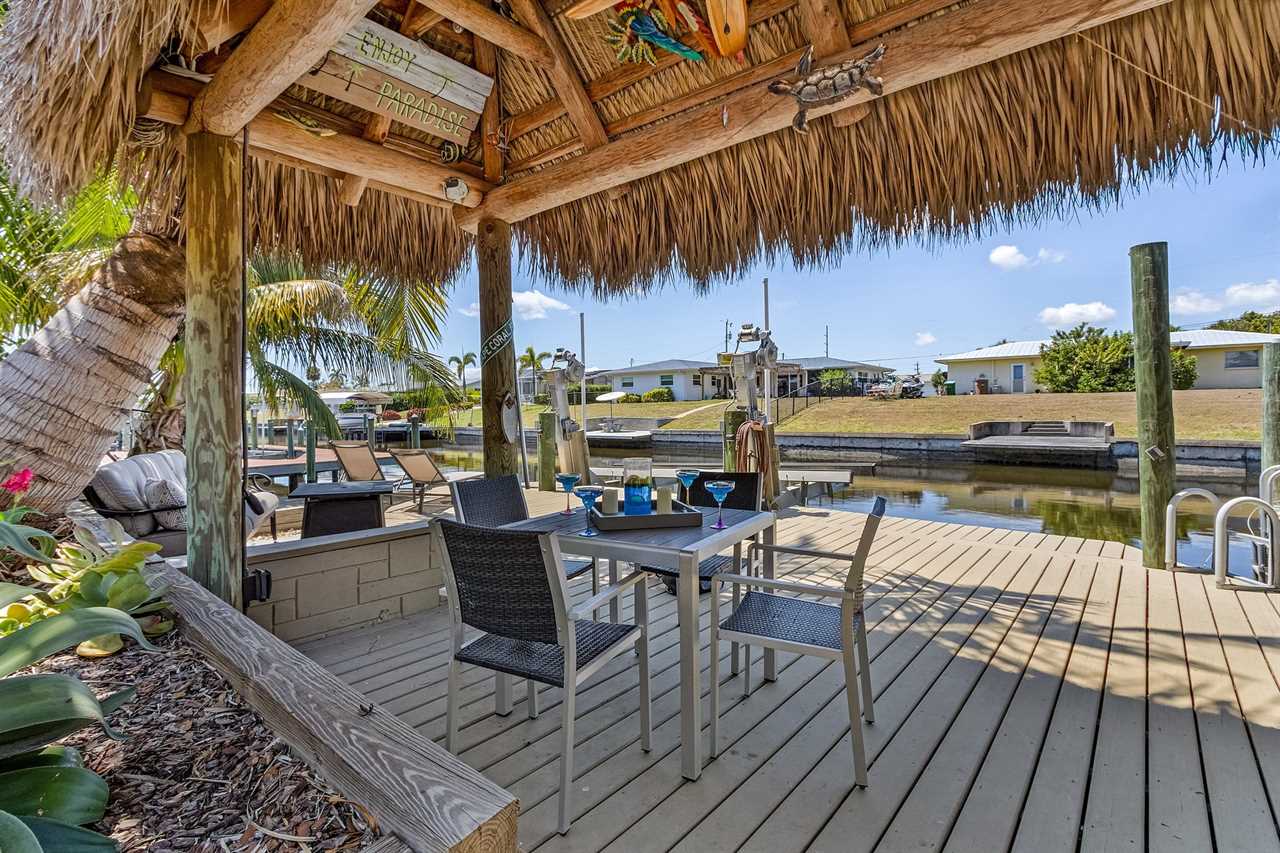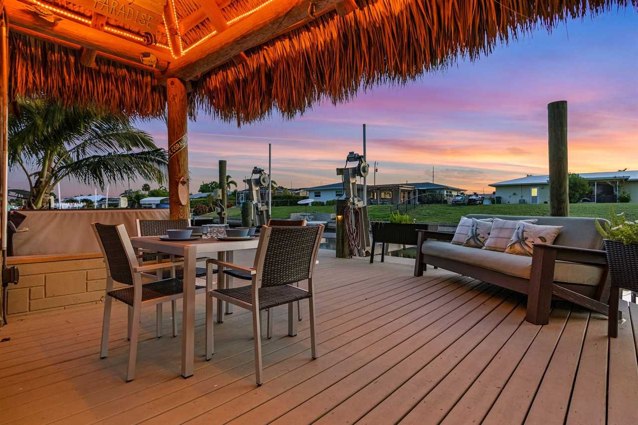 Beyond the pool, discover the dock with a charming tiki hut—perfect for fishing, reading, or simply savoring the waterfront views. As evening approaches, slip into the hot tub for a soothing soak while Mother Nature paints the sky with breathtaking sunset colors.