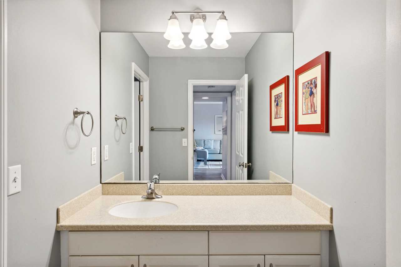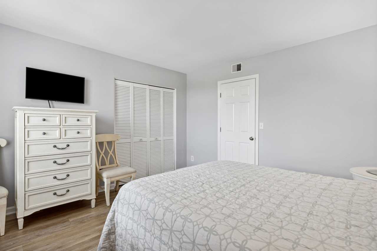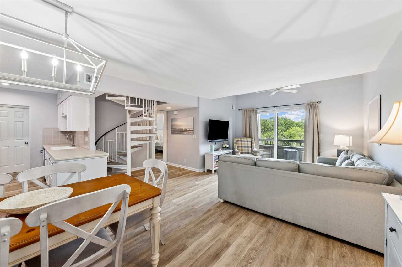 Ketch Court 891 comfortably accommodates up to eight guests. The main floor offers a cozy living room with a sleeper sofa that converts into a queen-size bed, and a convenient bedroom with a queen bed —ideal for guests with mobility needs. Both spaces share a full-size halfway bathroom.