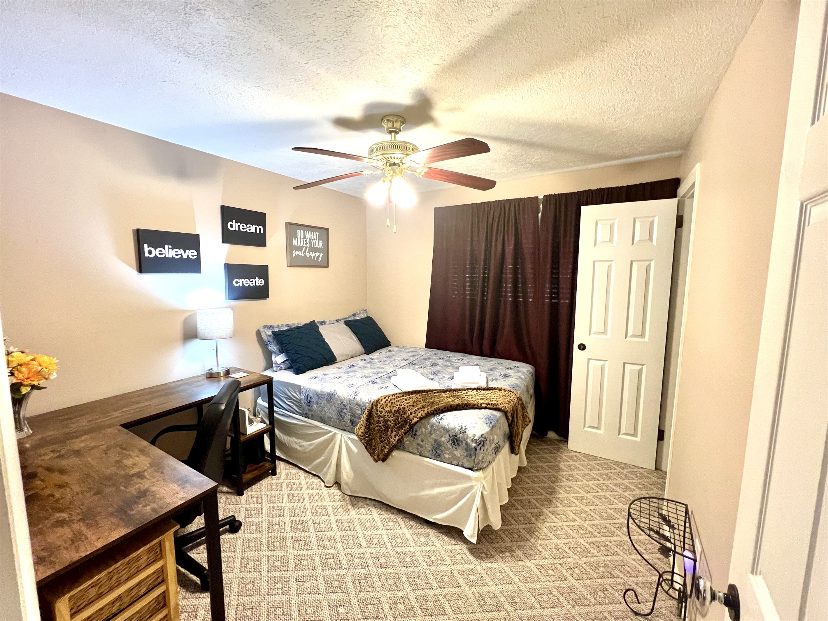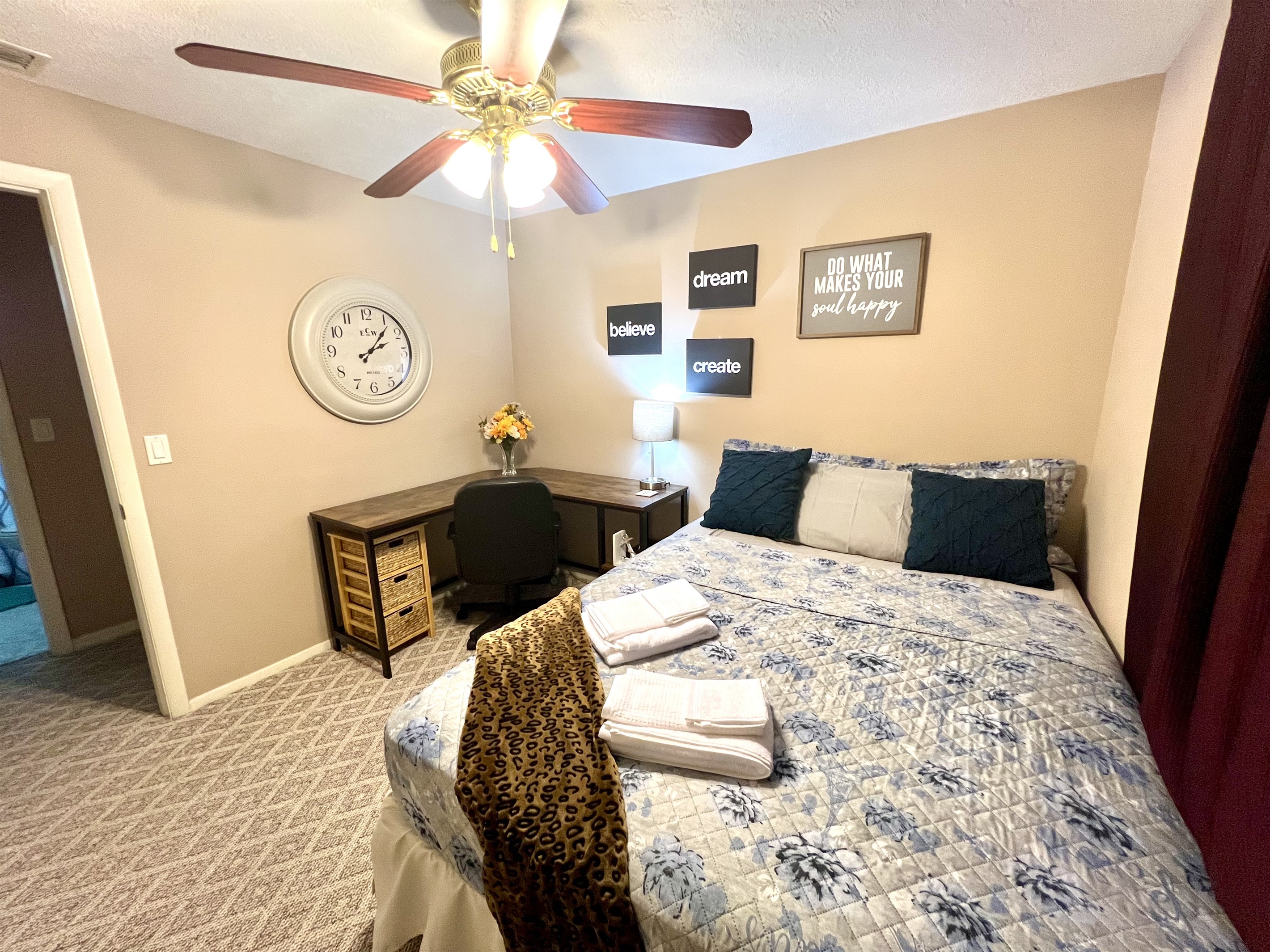 The fully furnished 3 bedroom property features 1 queen bed, 2 full-sized beds, and a handy washer and dryer in the garage. While the garage is compact for cars, it's ideal for motorcycles or bikes. Don't miss this opportunity for a comfortable and hassle-free stay!"