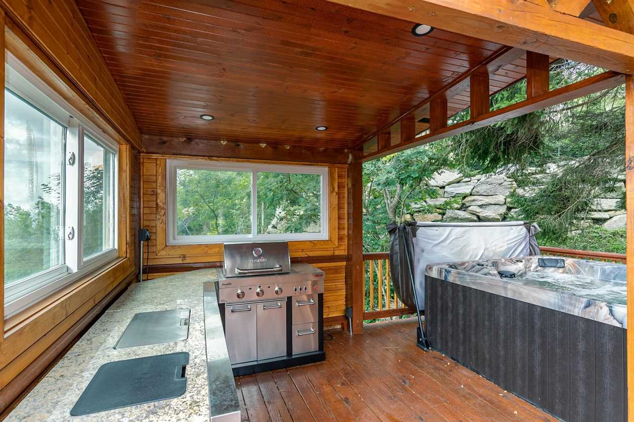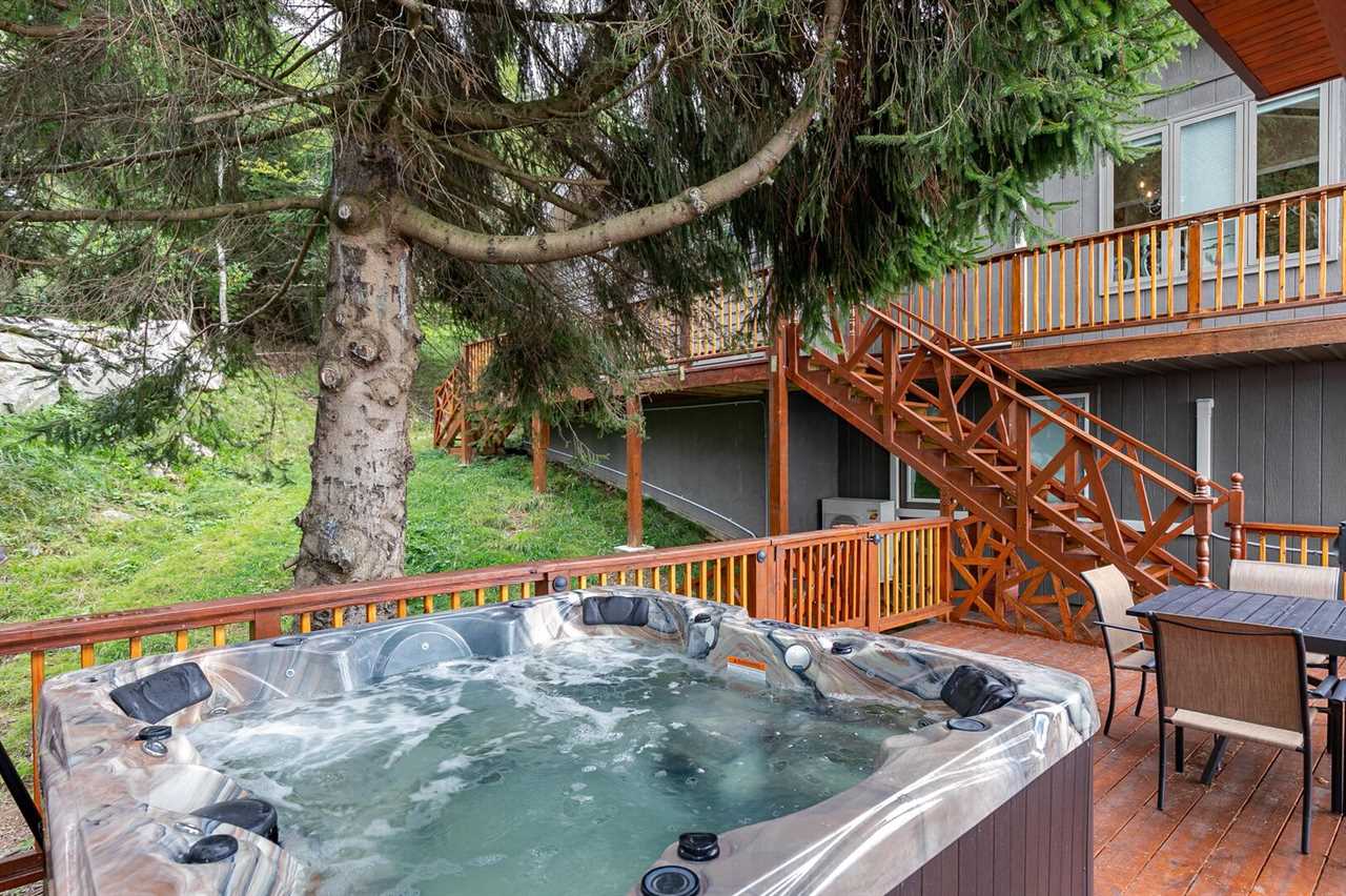 On the lower level, you'll discover more luxurious accommodations and amenities, including a second king bedroom and ensuite with deck access, and a queen bedroom for additional guests, with deck access. Grandview Haven truly excels in its outdoor living spaces. The lower deck is a hub for activity, with a fully equipped outdoor kitchen for al fresco dining and entertaining, and a relaxing hot tub where you can soak your cares away while surrounded by a mountain paradise. Escape the hustle and bustle of everyday life, immersed in the beauty of nature. With its king suites, queen bedroom, and stunning mountain views, it's the ideal destination for relaxation and rejuvenation. Come and experience the serenity and grandeur of Grandview Haven for yourself.