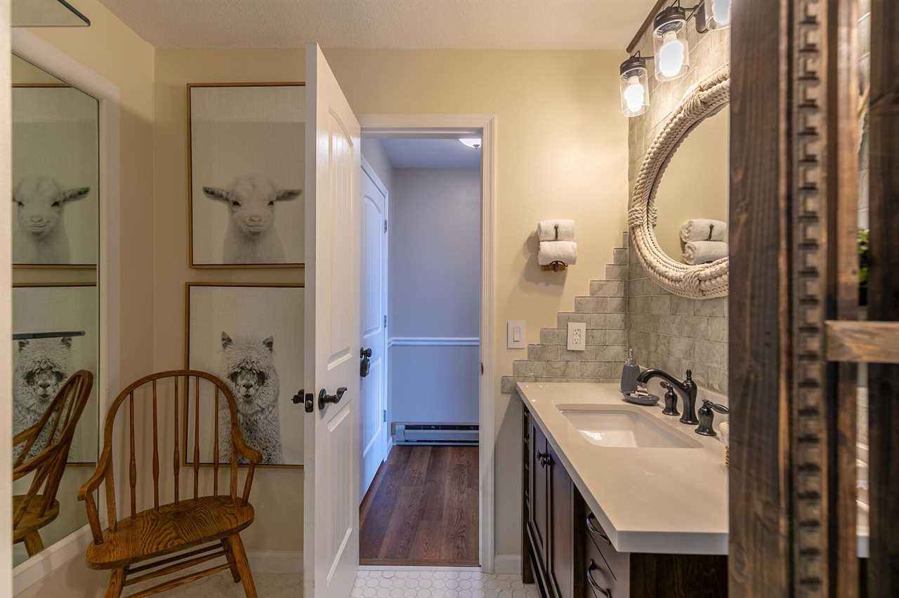 The welcoming main level is spacious, elegant, and convenient. The living room features floor-to-ceiling and clerestory windows, creating an open and airy atmosphere. A stone wood-burning fireplace and TV add to the coziness. The kitchen has stainless appliances and gorgeous granite countertops. Gather together in the dining space with fabulous views. The main level also hosts the luxurious king ensuite bedroom, with a comfortable king-sized bed and a private bathroom with custom tile work. Sliding glass doors lead to a private deck, allowing you to begin your day with stunning mountain views and enjoy your morning coffee in peace.
