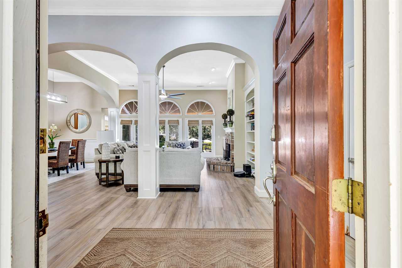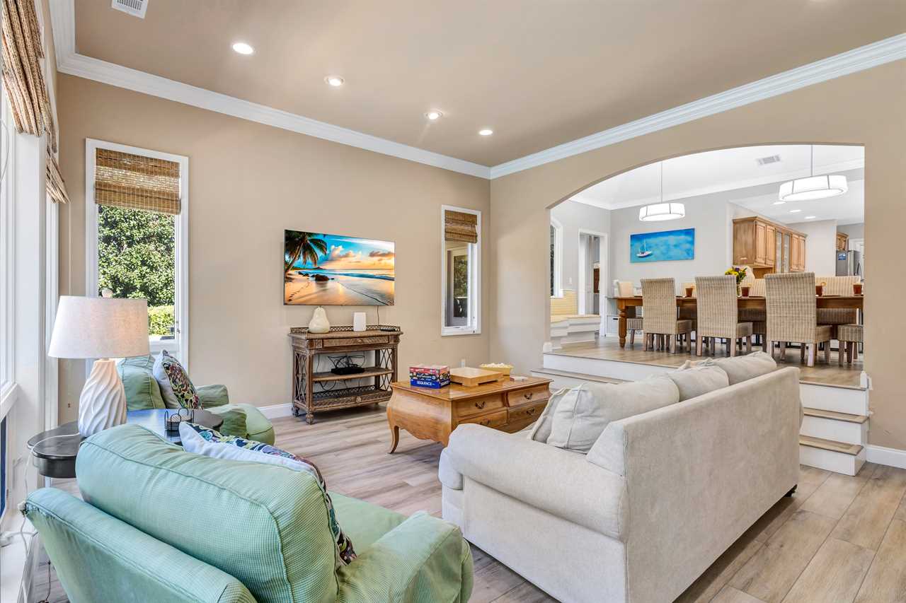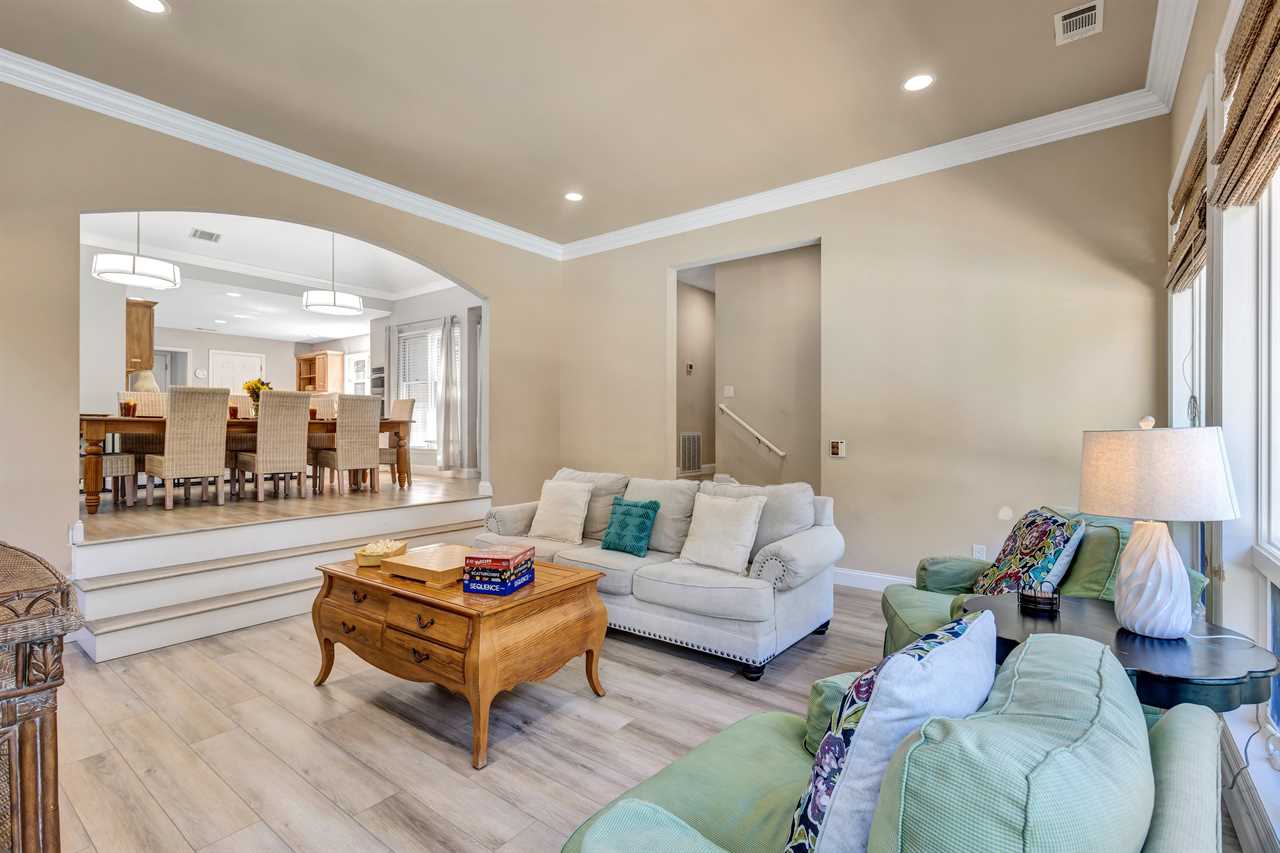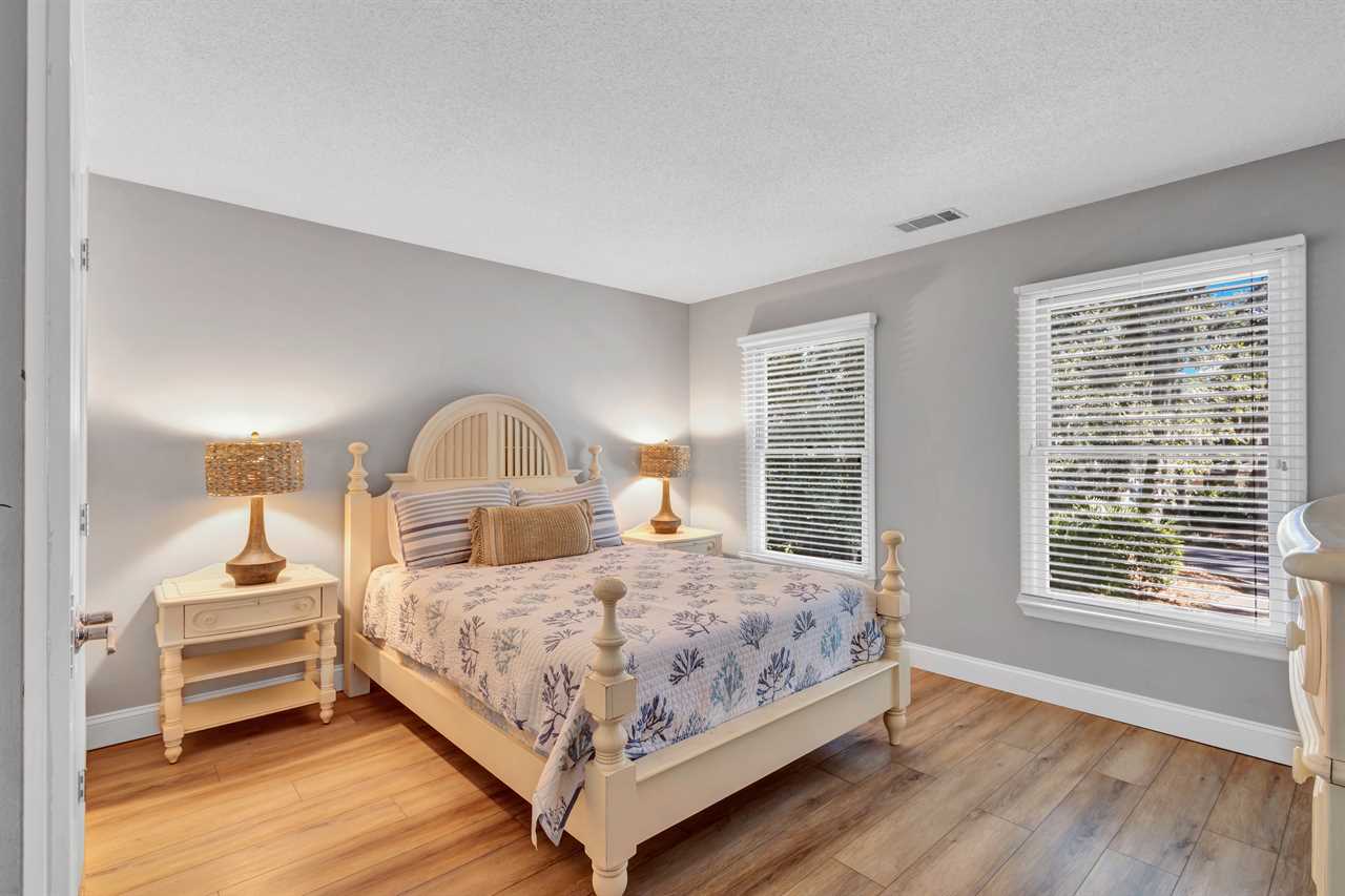 Step into a blend of comfort and style with this sophisticated Lowcountry gem. This elegant 7-bedroom home offers spacious accommodations for a big group without compromising personal space. Unwind in the inviting indoor-outdoor living space, complete with brand-new modern furnishings, and FOUR living areas to spread out! The expansive deck overlooks a private heated pool and offers serene wooded views of the world renown Robert Trent Jones Golf Course. Located just a short walking distance from the ocean with its endless sandy beaches.