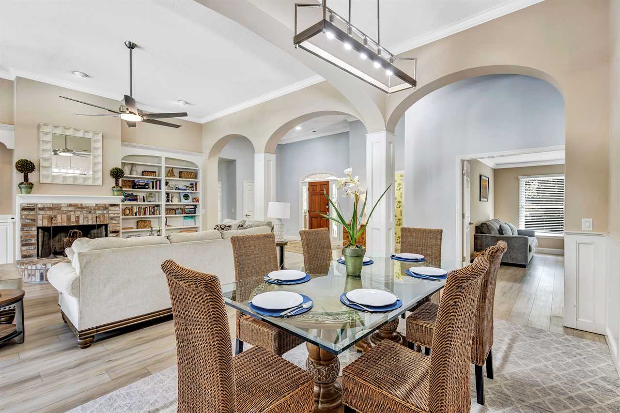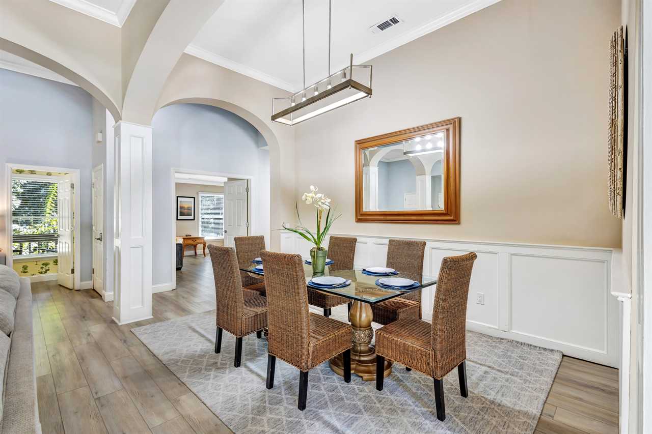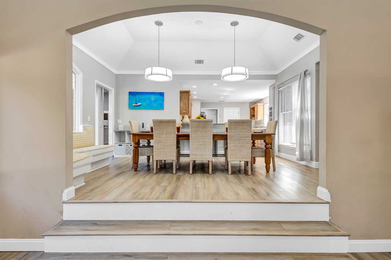 Step into the eat-in kitchen, making it a perfect spot for morning coffee or casual dining. Adjacent to this, a fully-equipped kitchen is ready to handle casual meals and holiday feasts alike. The open layout continues into a formal dining room, ensuring ample space for everyone in your group to enjoy meals and conversations together.