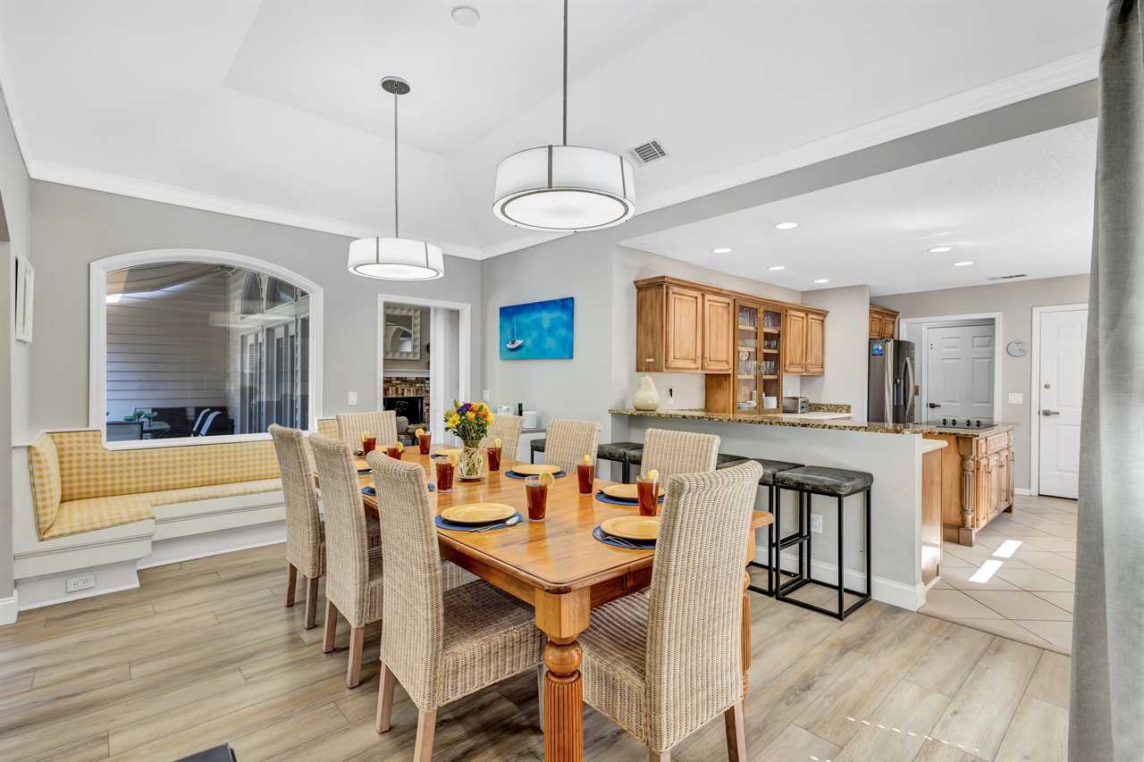 ✓ Eat-in kitchen table seats 8 plus 5 at the kitchen bar