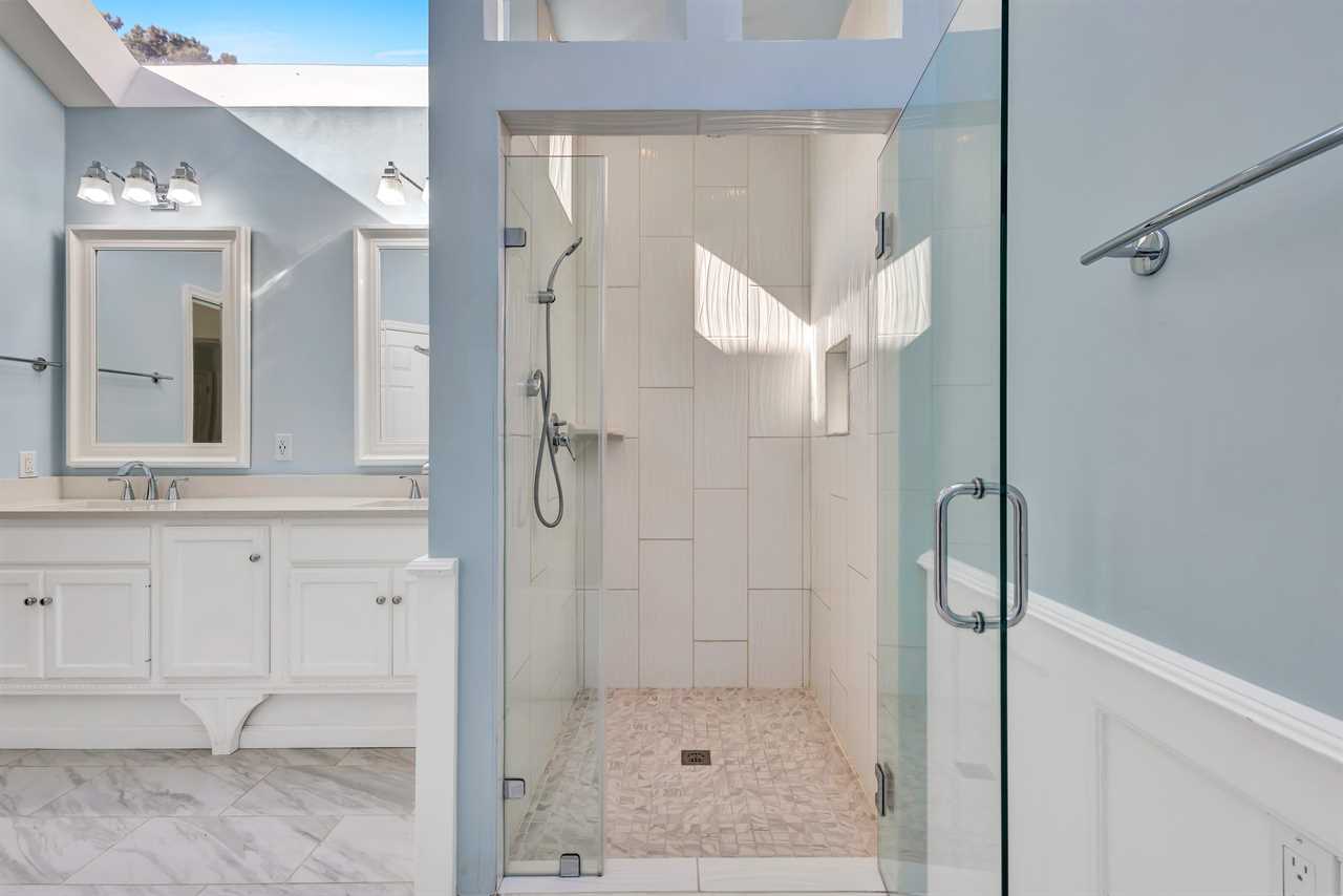 ✓ Hall Bathroom: Walk-in shower