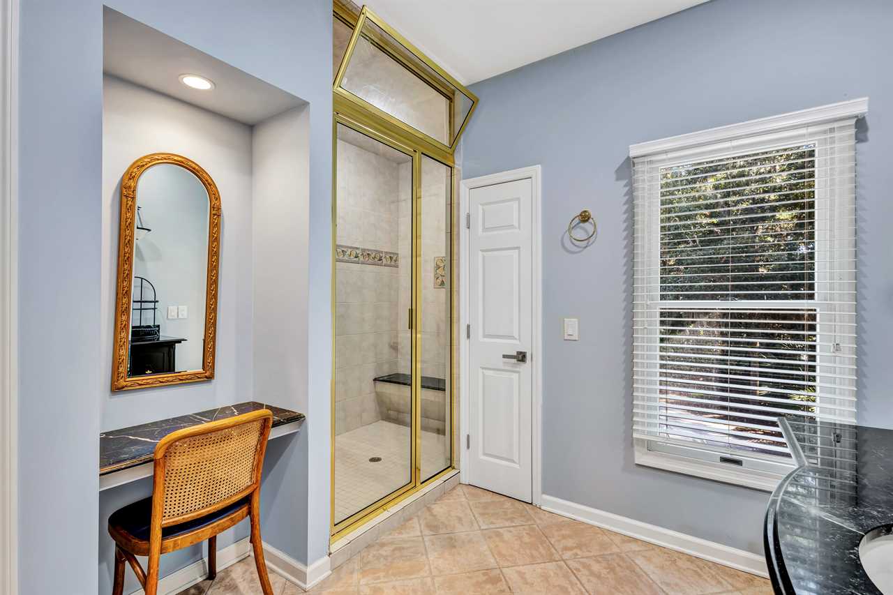 Just off the kitchen, an additional living area invites you to relax with serene views of lush Lowcountry landscapes and a glimpse of the fairway through floor-to-ceiling windows. This cozy retreat offers a perfect spot to unwind and connect with nature from the comfort of indoors.