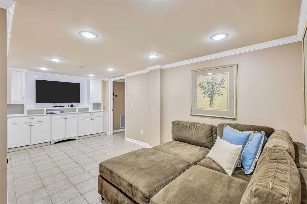 Right-Side Family Room: Also equipped with a comfortable sectional and smart TV, creating a cozy retreat.