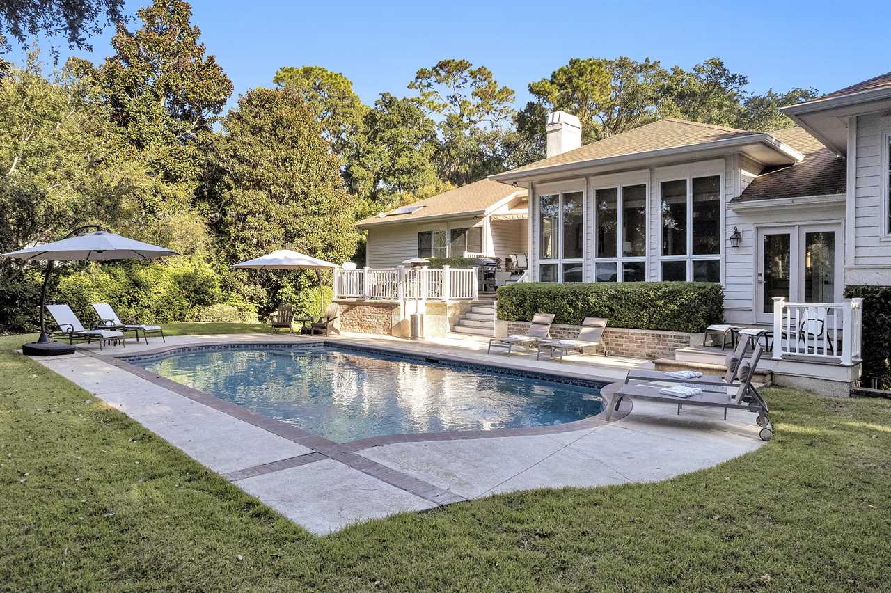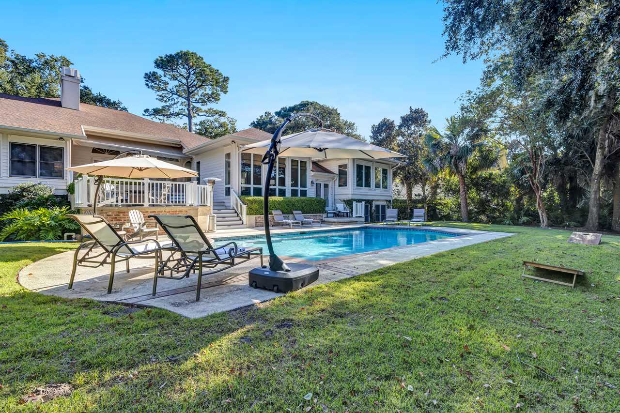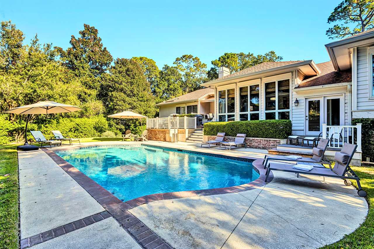 Welcome to 37 Sea Lane, a family-friendly retreat for up to 16 guests nestled in Palmetto Dunes Oceanfront Resort, ideal for golf trips and multi-family gatherings. This spacious home spans 2 levels, featuring 4 living areas and a large private yard with pool. Outdoor spaces boast a fire pit, grill, and al fresco dining. Located .5 mile walk from the beach, right on the Robert Trent Jones Golf Course - it's golfers paradise!