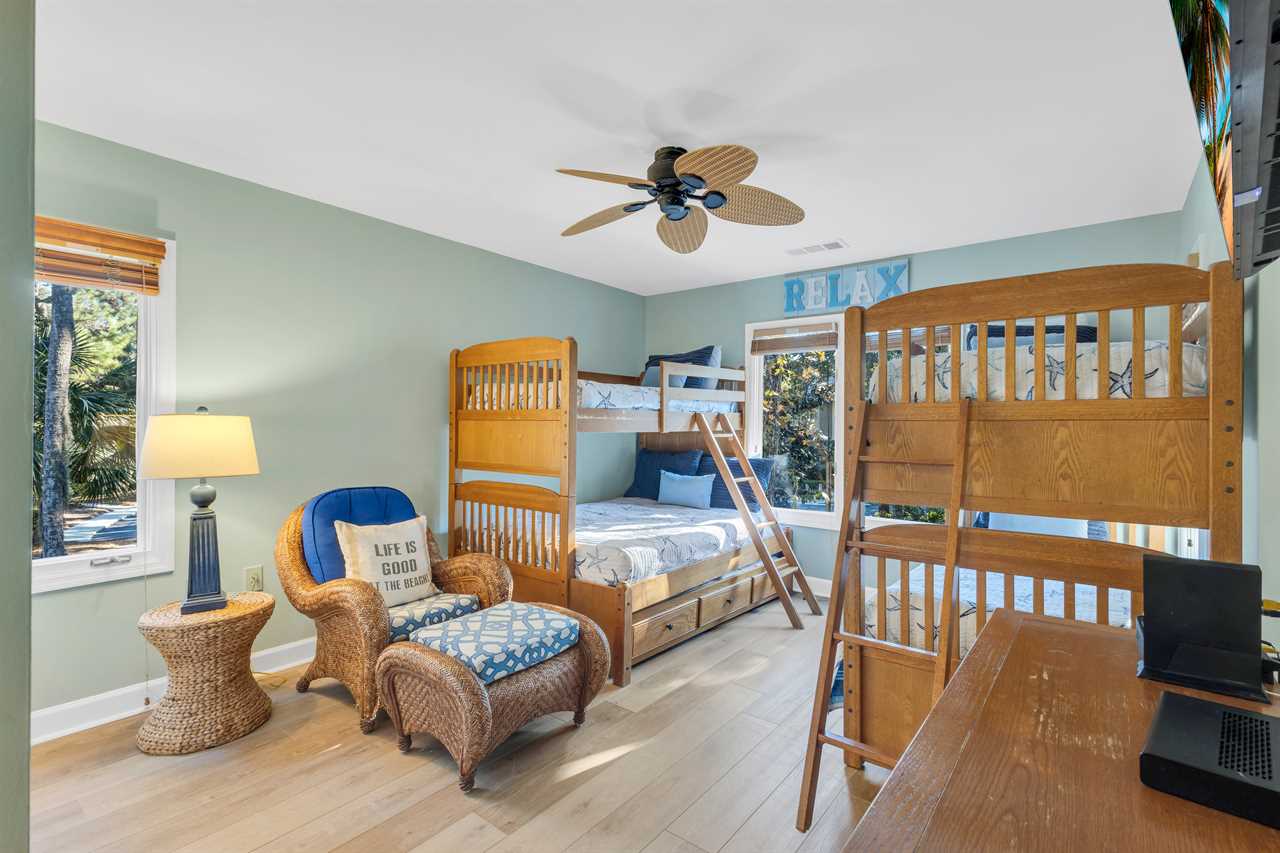 ✓ Bedroom 2: Bunk beds (twin-over-double with trundle & twin-over-twin), Smart TV, perfect for kids or teens.