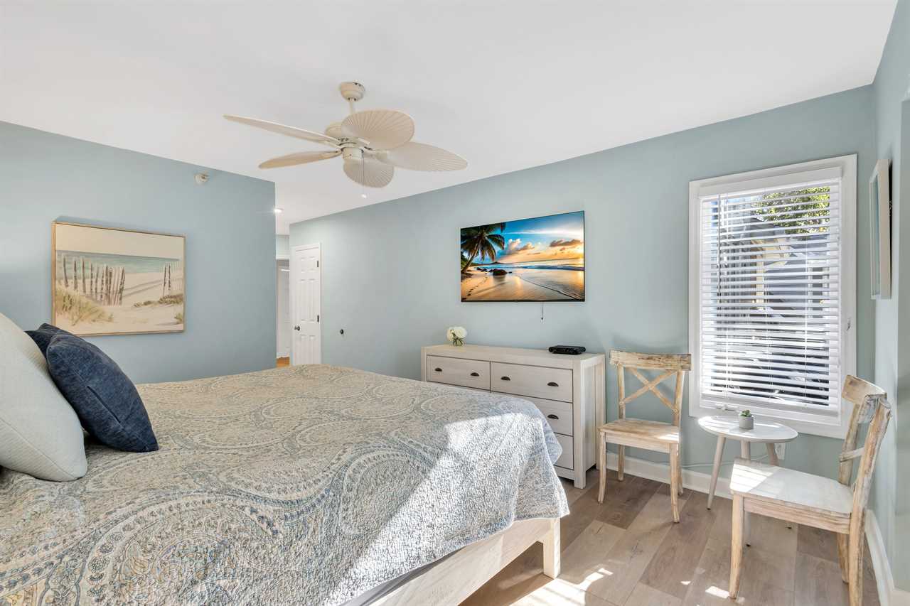 ✓ Bedroom 1: King bed, Smart TV, en-suite bathroom with walk-in shower and soaking tub.