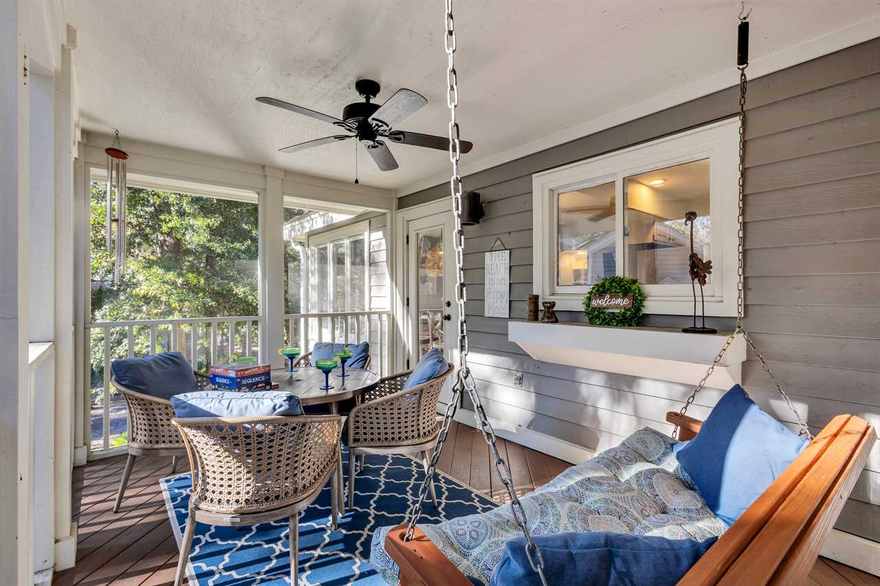 ✓ Screened-in porch with comfortable seating.