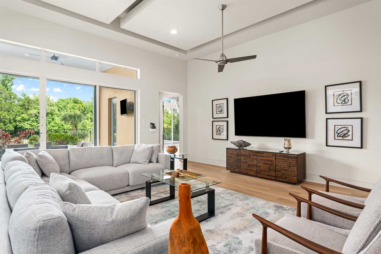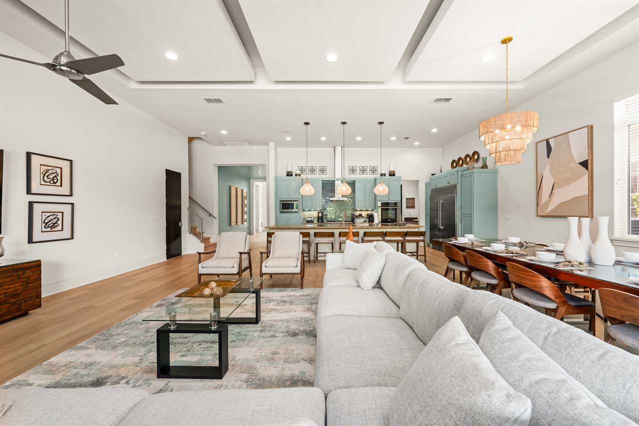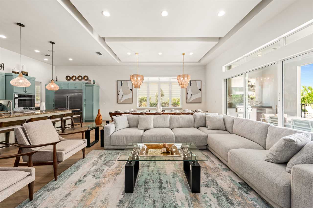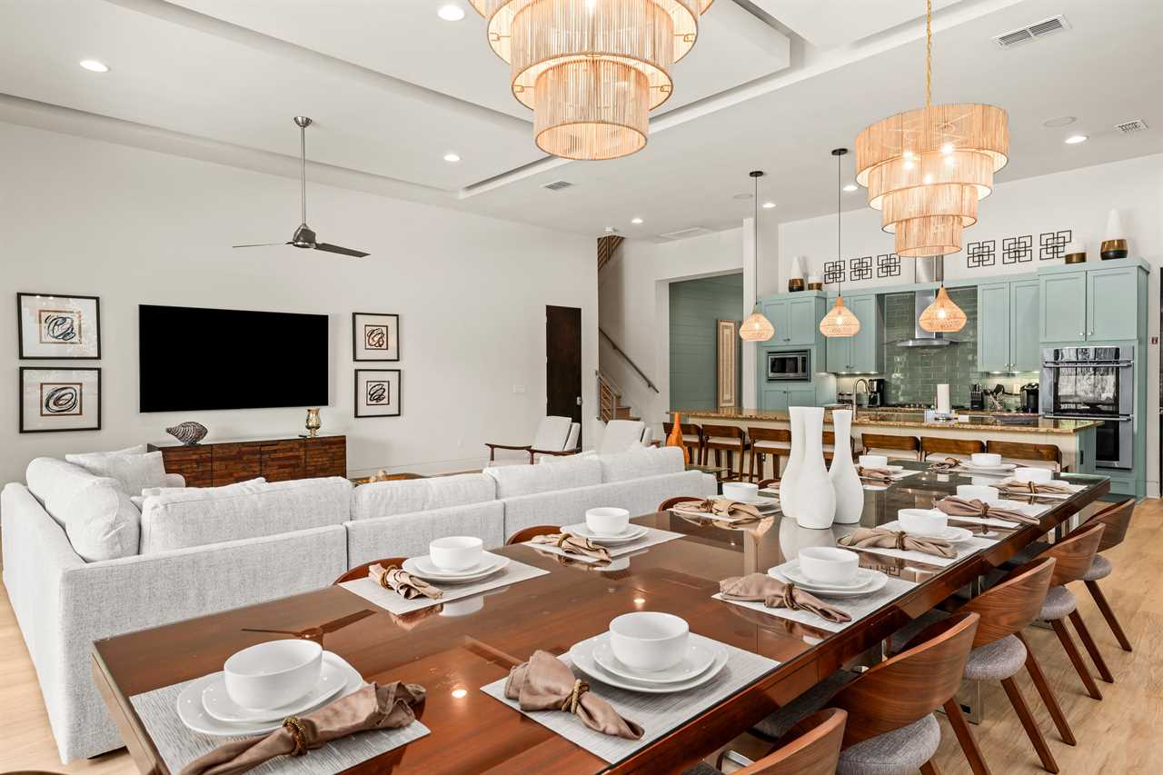 Tucked within the exclusive Reunion Resort community in Homestead, this expansive and vibrant estate offers a resort-style retreat with luxury touches and fun around every corner. The home welcomes you with an open-concept layout where a modern, fully equipped kitchen flows into an elegant dining area and a spacious living room featuring a large wall-mounted smart TV—perfect for relaxing or entertaining.