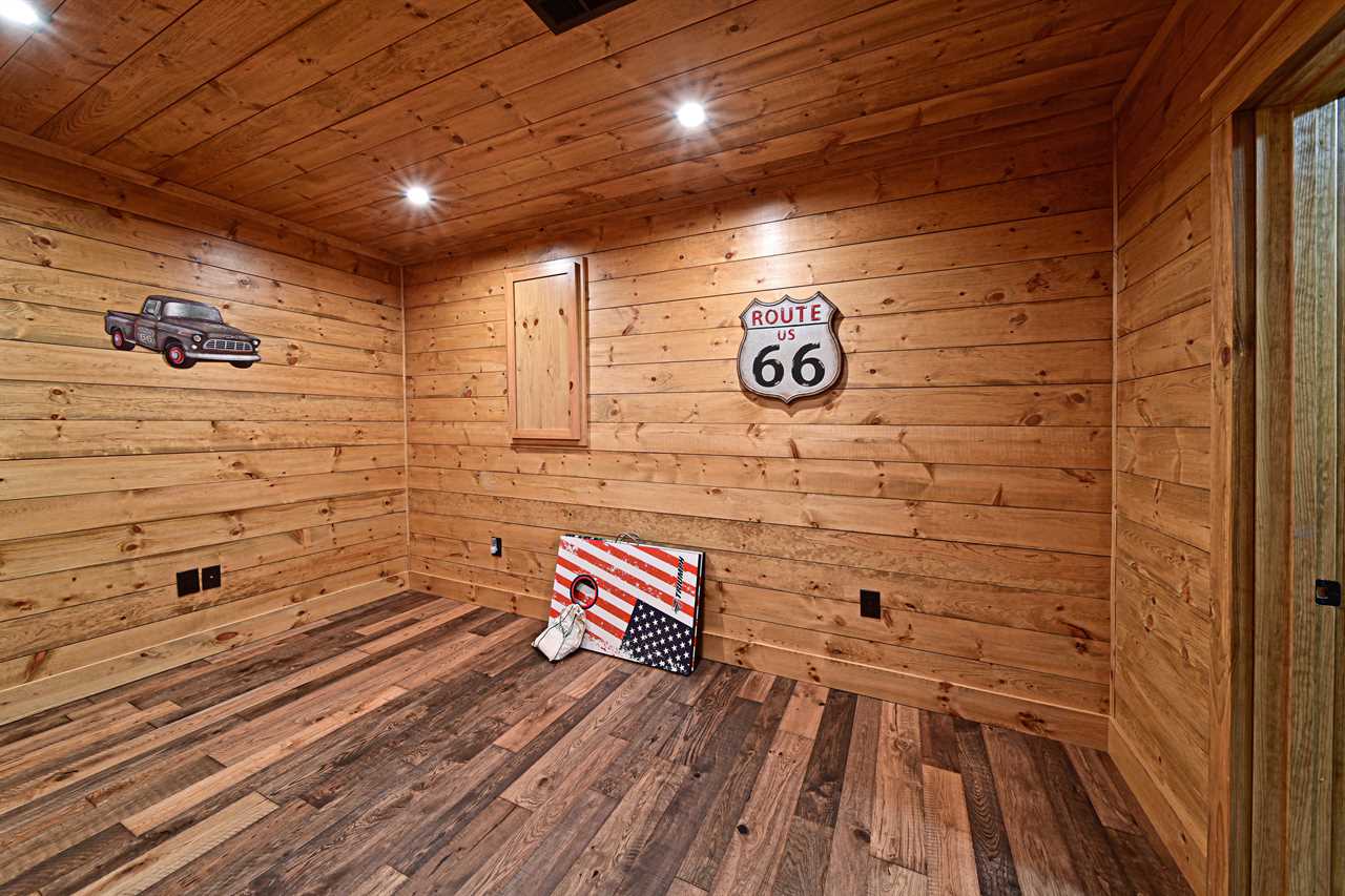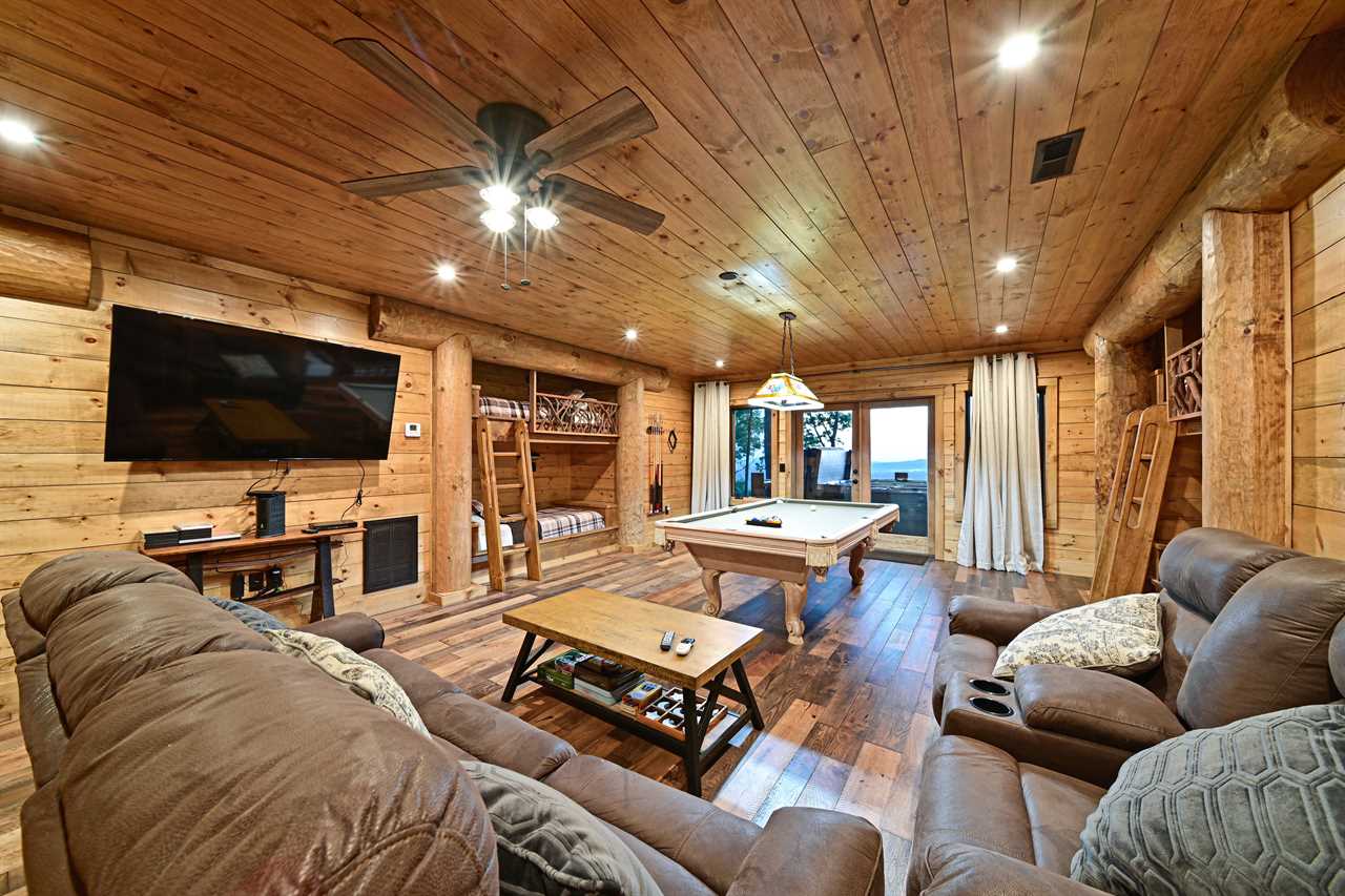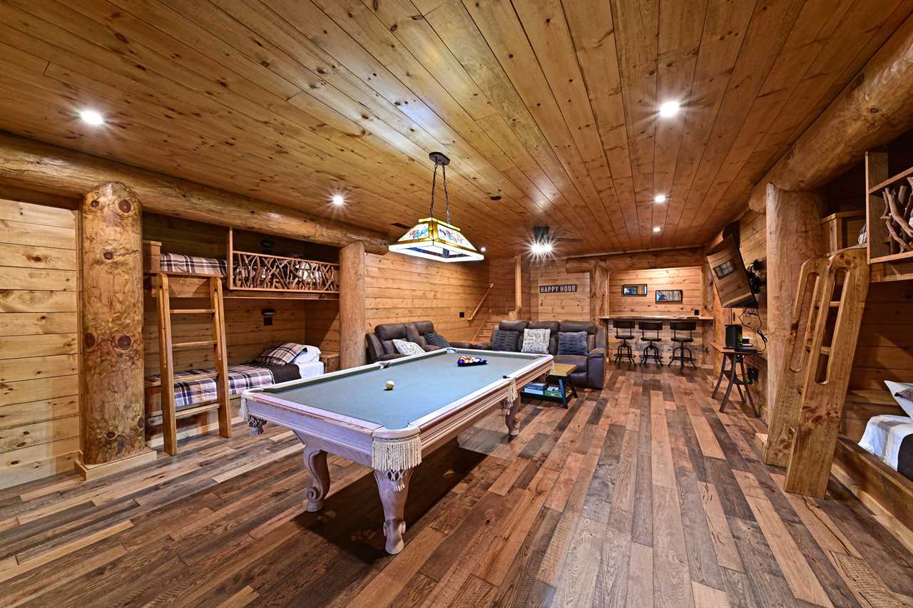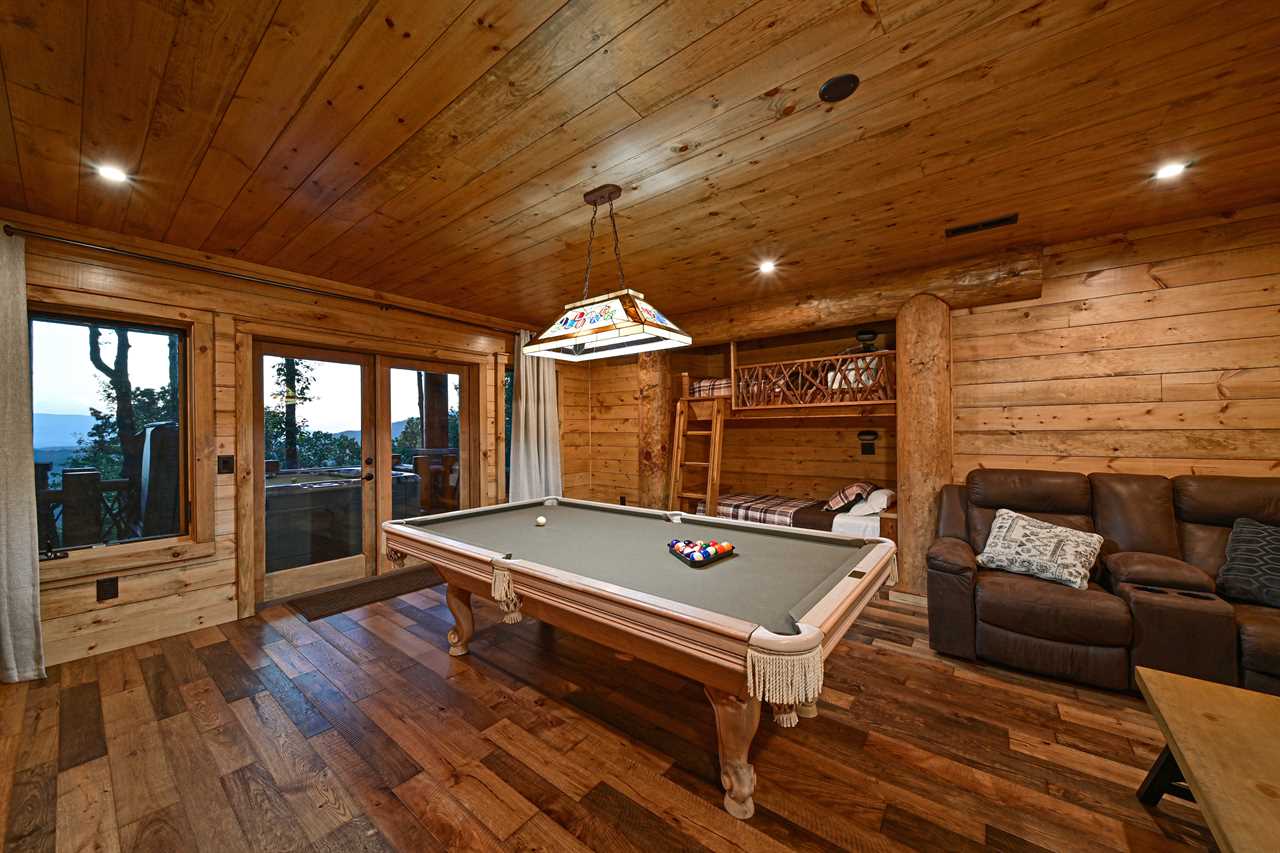 Need extra space? This ultimate game room features custom-built, wall-integrated double bunk beds designed for kids and teens, offering a cozy, "hidden" sleep spot after a day of adventure. Offers additional sleeping for 4.