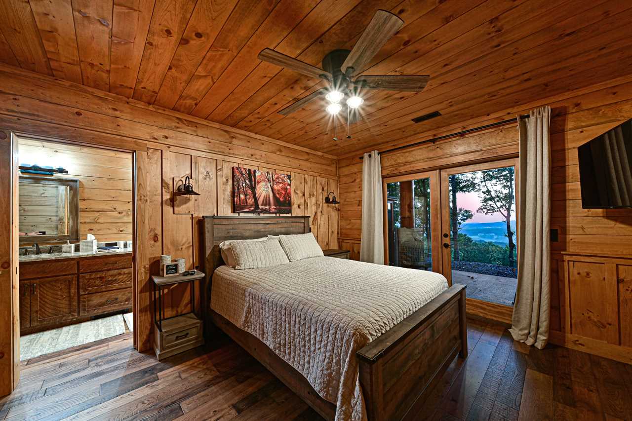 Inside, you'll find elegant furnishings, a fully equipped kitchen, and plenty of space to relax or entertain. The main level features a spacious king suite with private en-suite bathroom, plus a cozy queen/twin bunk room with a separate full bath—perfect for families or friends. Downstairs, unwind in a second king bedroom with en-suite that opens up to a porch with show-stopping mountain vistas.