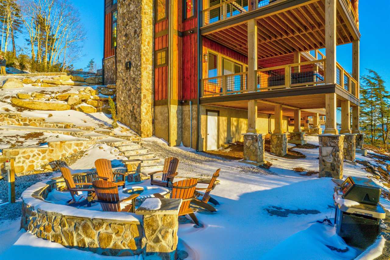 Completed in the fall of 2024, this gorgeous home is located down a private, level driveway off and only a minute from Great Camp, the summer center for entertainment.