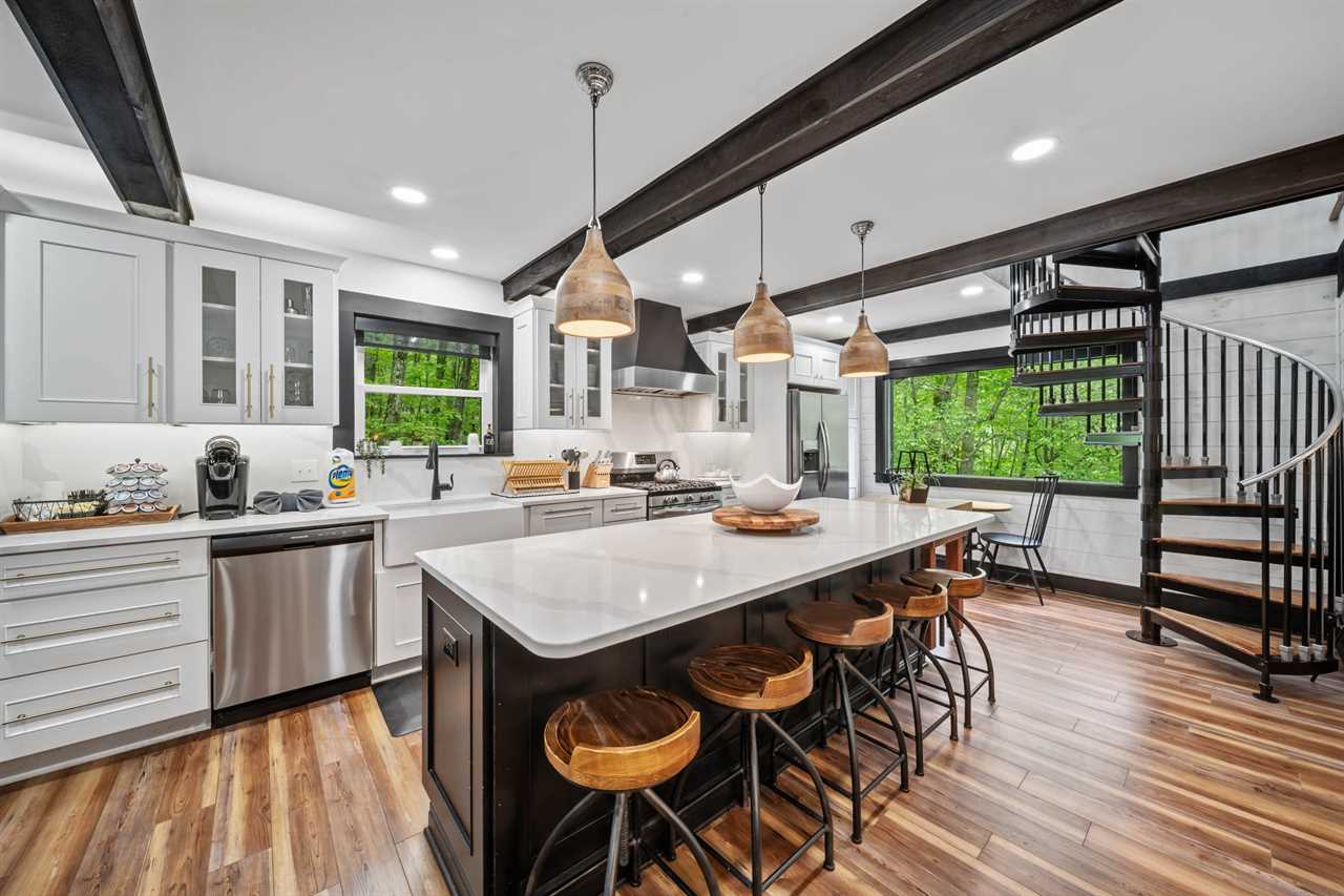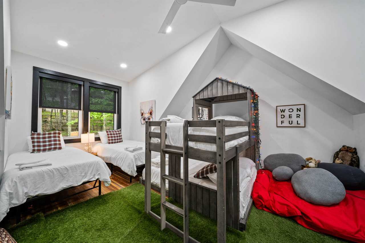 Tucked away in the serene mountains at Beech, the home features sweeping seasonal views that create a breathtaking backdrop for your stay. Thoughtfully renovated interiors blend natural wood accents with modern touches, offering warm, spacious living areas perfect for gathering or quiet relaxation.