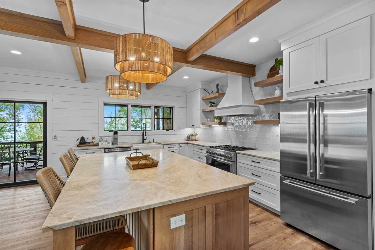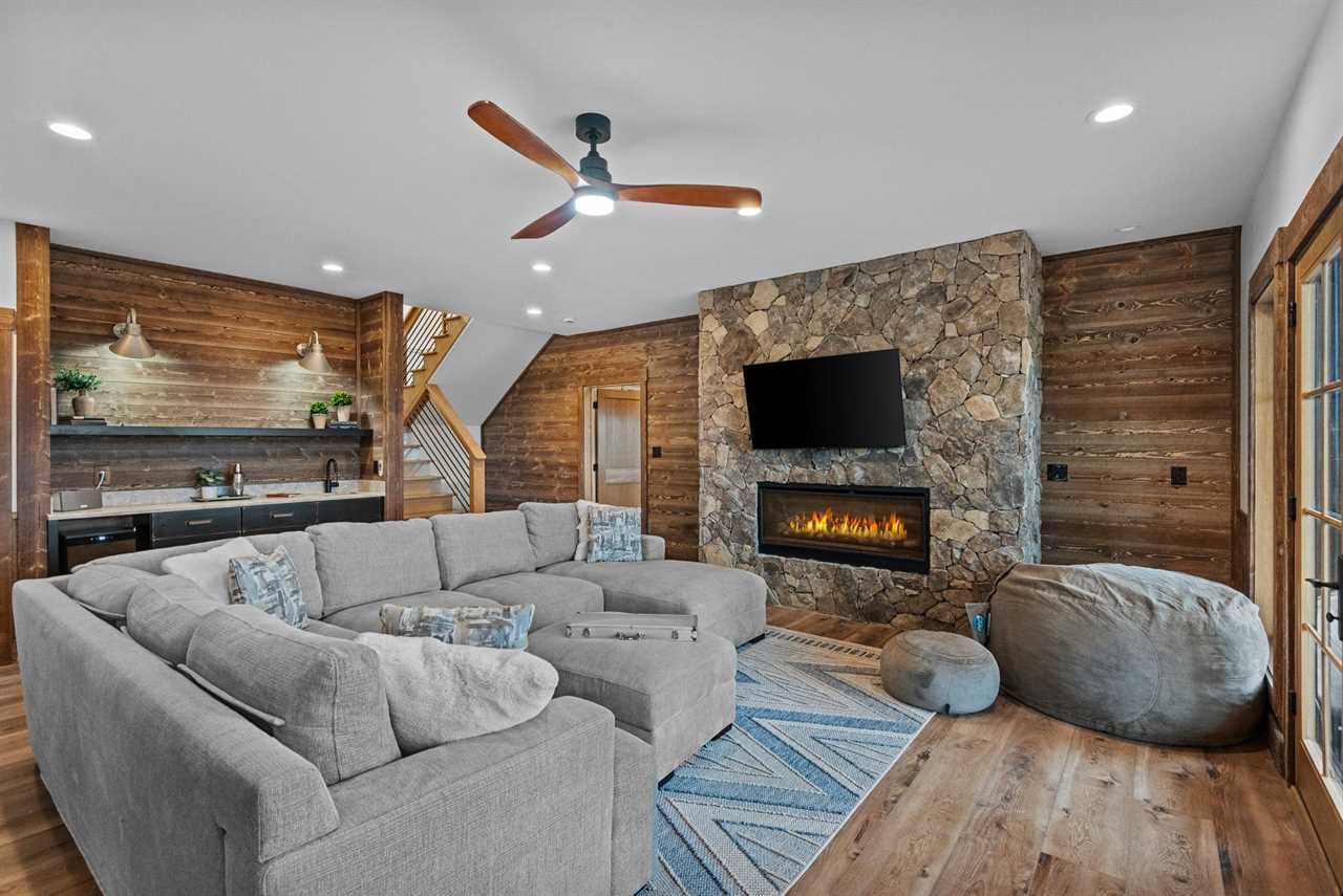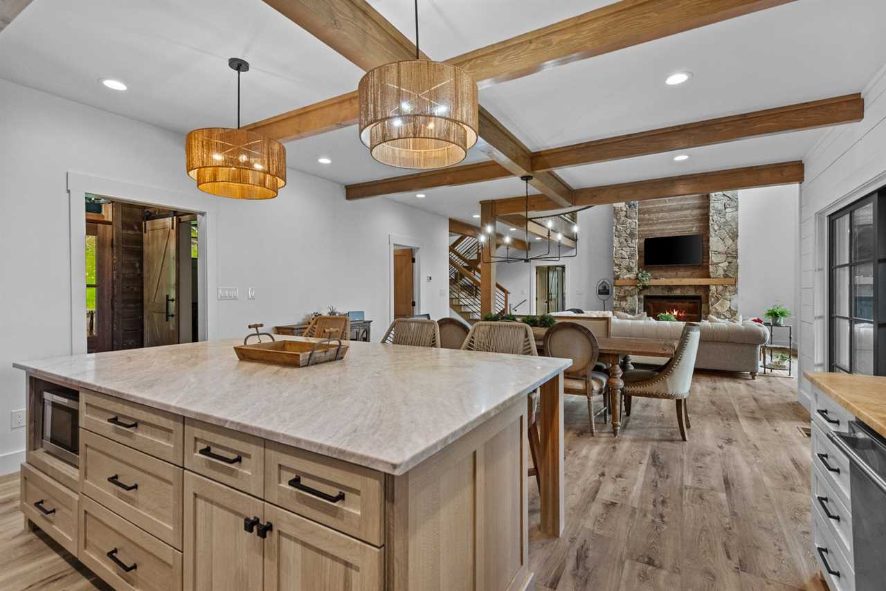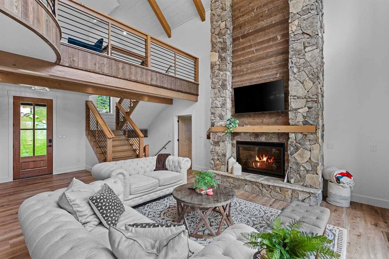 Step inside and discover soaring vaulted ceilings, a grand stone floor-to-ceiling gas log fireplace, and expansive windows that flood the open-concept living space with natural light. The gourmet kitchen is a chef's dream and comes complete with top-of-the-line stainless steel appliances, a large island for entertaining, and custom cabinetry throughout. Adjacent to the kitchen is a spacious dining area for 8 to enjoy a meal together, and the graciously appointed living room is just steps away, perfect for gathering with family and friends after a day of exploring the mountains.