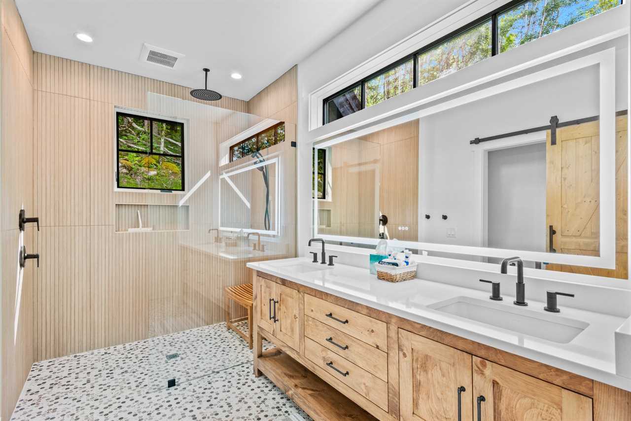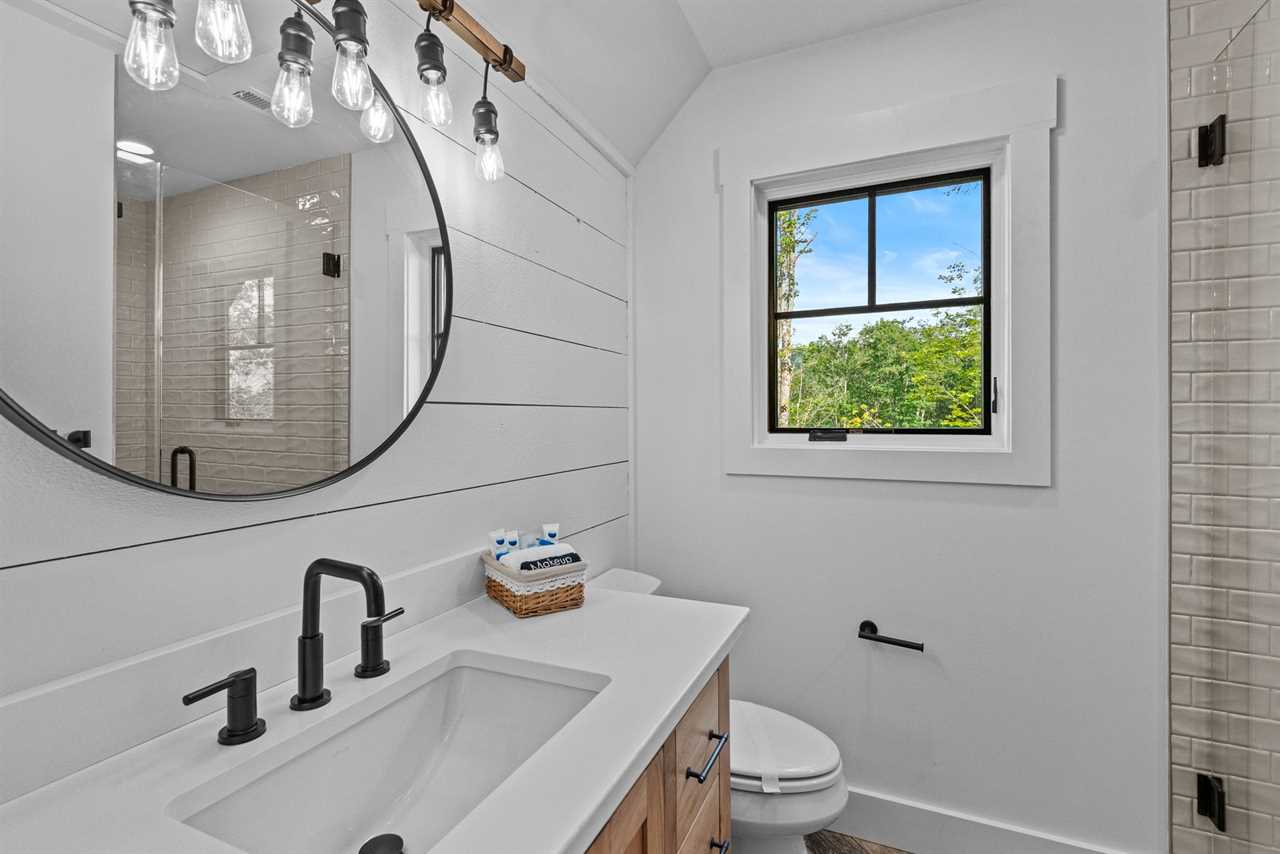 Each of the five bedrooms is a private retreat, featuring plush bedding and luxurious linens and their own bathroom. The main-level master suite boasts a king bed, TV, deck access, and a walk-in shower, and in-floor heating. Upstairs you'll find two more plush suites, each with a Queen bed and an XL-length Twin bed, TV, and private bath. Downstairs is another King ensuite with a walk-in shower and soaking tub and a fifth bedroom with two sets of built in twin-over-twin bunk beds. Guests enjoying the bunk room have their own bathroom with shower just down the hall, too.