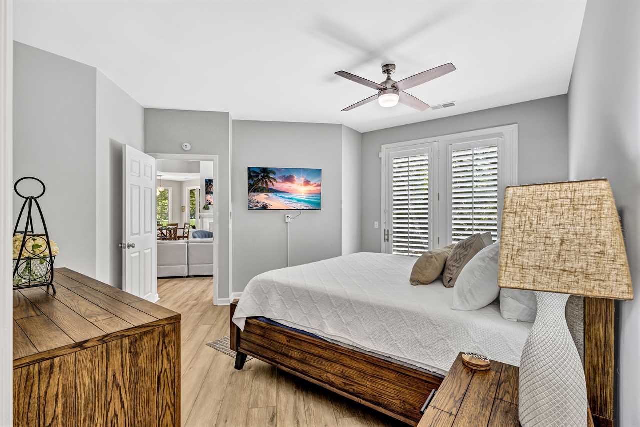Step outside to a screened-in patio just off the dining room, complete with cozy seating and a ceiling fan—perfect for relaxing after a day on the course. A spacious deck offers additional outdoor dining and a second view of golfers teeing off. Fire up the grill for outdoor cooking and al fresco meals!