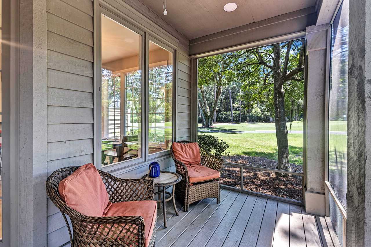 HOST & HOME presents…28 Wood Duck Court! Tucked away at the end of a quiet street in the exclusive Club Course community of Sea Pines, this pet friendly and beautifully renovated home offers sweeping views of the private 18-hole Club Course. Nestled between the fairway and a peaceful private street, the property provides a serene and secluded setting for your getaway. Relax on the private patio or screened-in porch while taking in unobstructed views of the green and tee box. Inside, nearly every room boasts scenic golf course views, making it easy to soak in the beauty of your surroundings throughout your stay.
