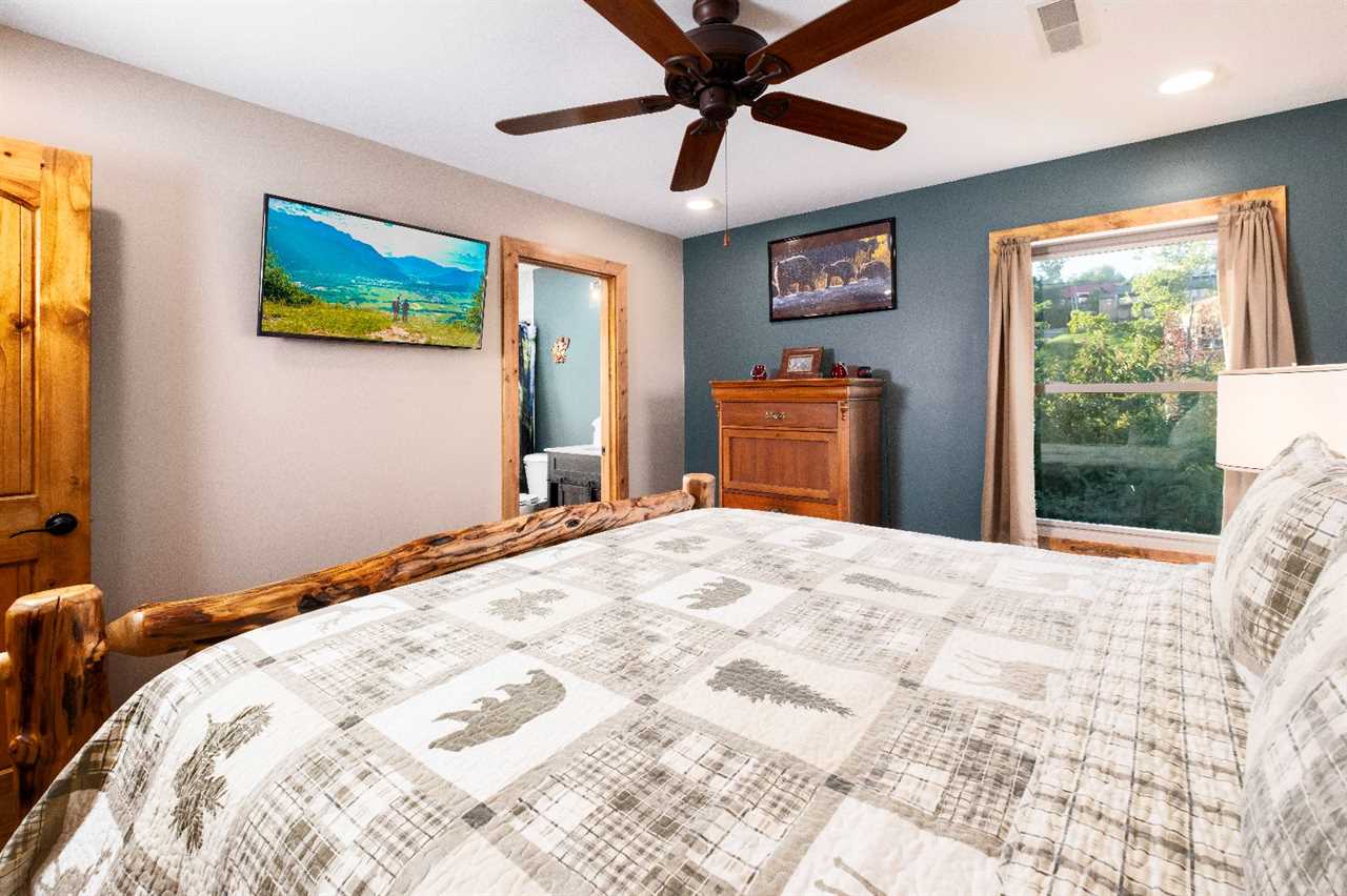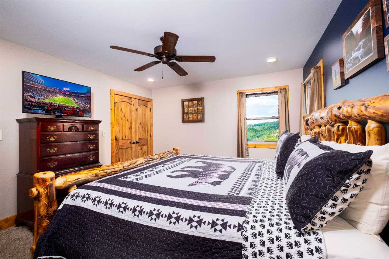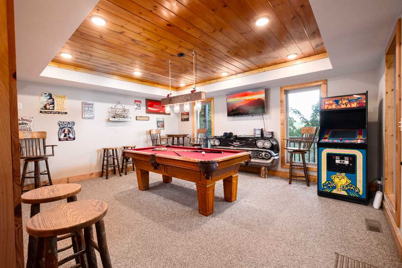 When it's time to play, the rec room is ready with a pool table, board games, and classic arcade games — including Pac-Man and 400 games total! Each of the 5 bedrooms offers a king-size bed, a TV, and private bathroom access, with 2 suites opening directly to the decks. Whether you're planning a couples' retreat, a multi-generational family vacation, or a getaway with your best friends, this cabin's layout makes it easy to share the experience while still having your own space to recharge.