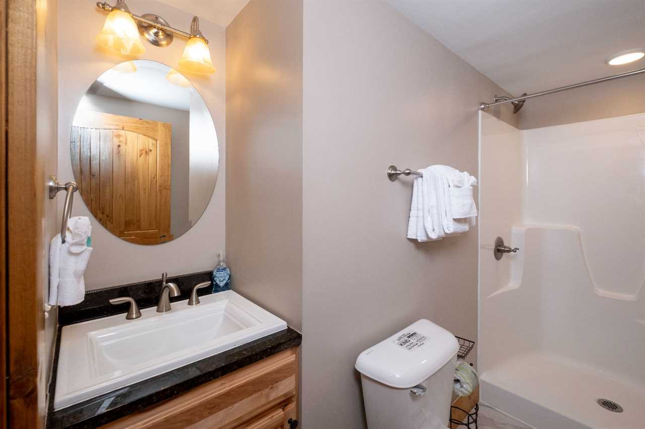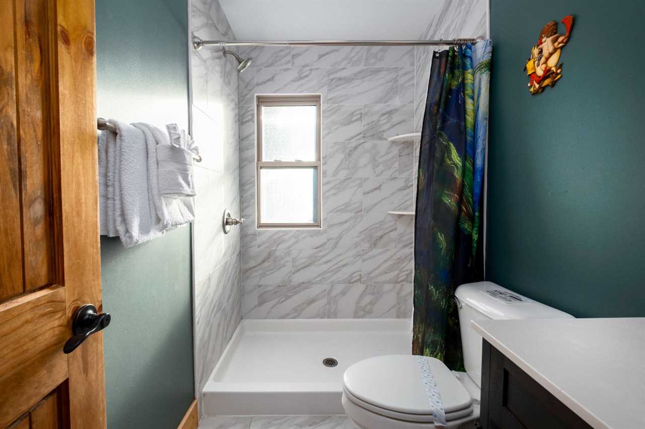 • The gravel driveway is steep, leading to flat, paved parking for up to 4 vehicles, with only 2 steps up to reach the porch.