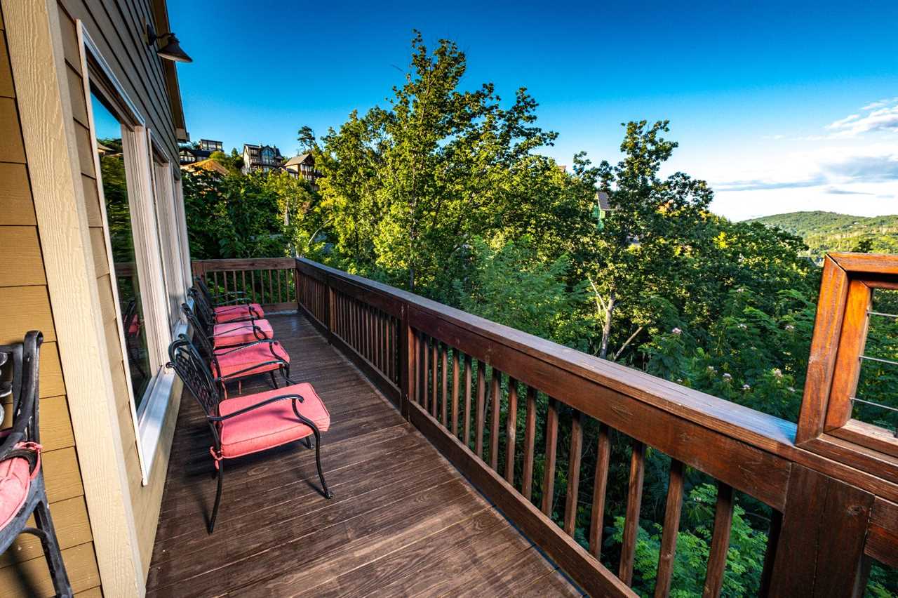 Outdoors, enjoy sprawling decks with grilled meals and some of the best mountain views in the region. Spend quiet mornings in a glider chair, enjoy happy hour by the firepit, or challenge your crew to a game of pickleball or ping-pong at one of the Chalet Village Resort clubhouses — also featuring seasonal swimming pools. With a washer/dryer, Wi-Fi, and easy access to both Gatlinburg and Pigeon Forge (Dollywood is just over 8 miles away!), you'll have everything you need for a relaxing escape in the Smokies.