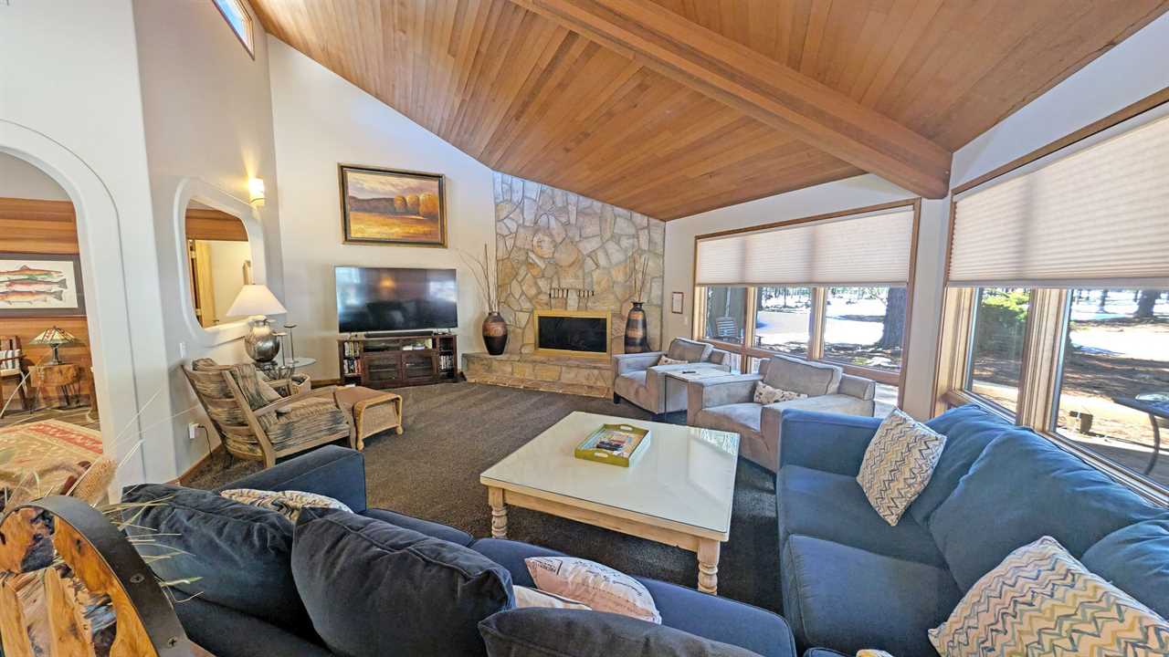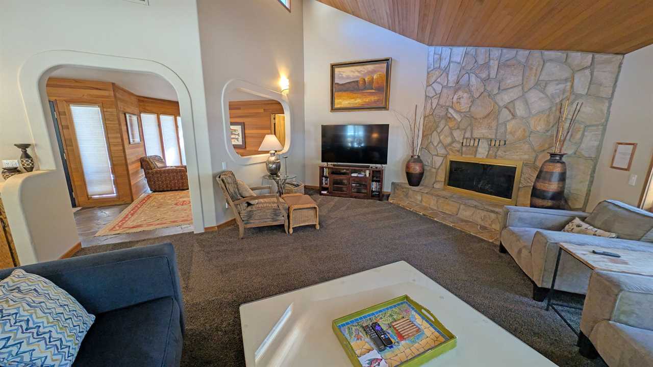 - Inviting living room with a 70" 4K HDTV and cozy fireplace