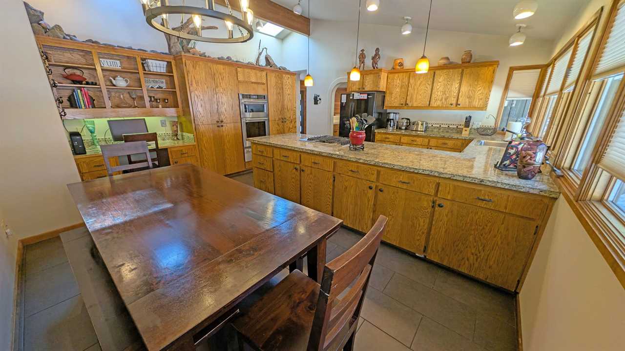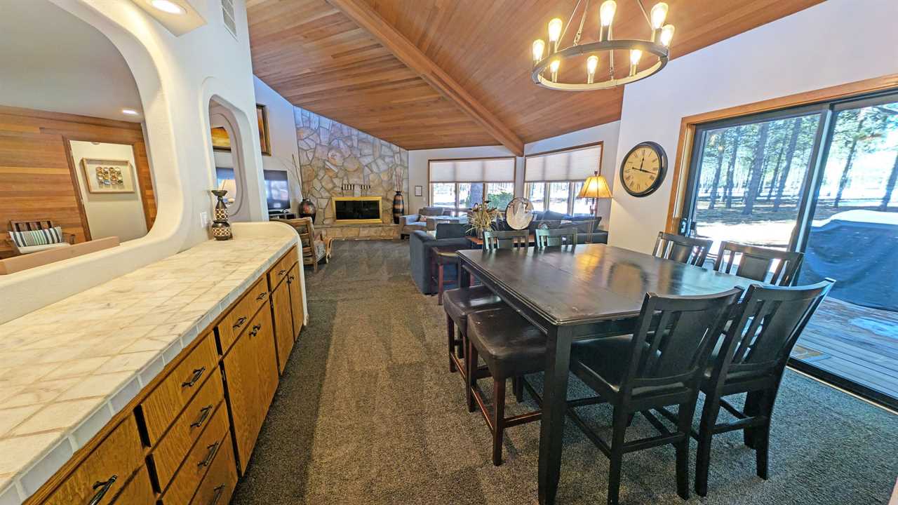 - Two dining spaces: a main dining table and a pub-height dining/game table
