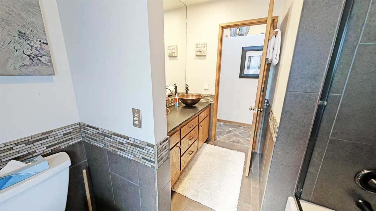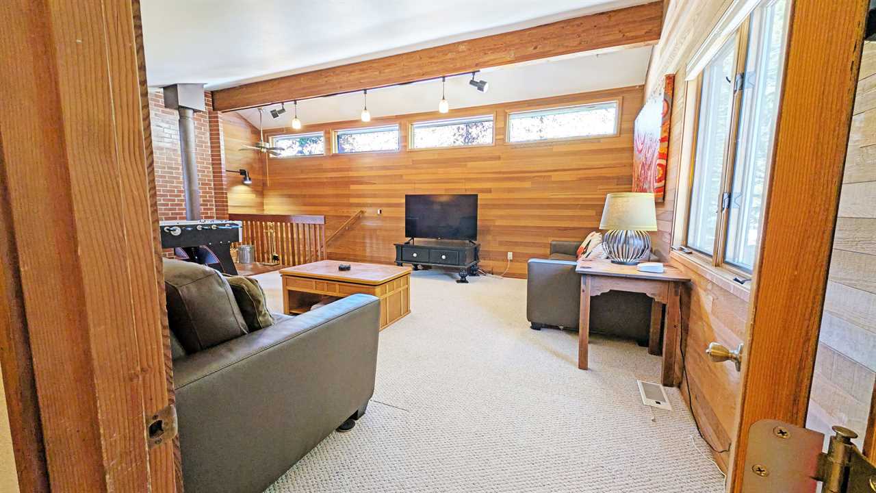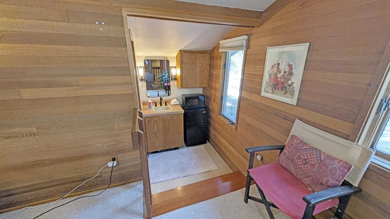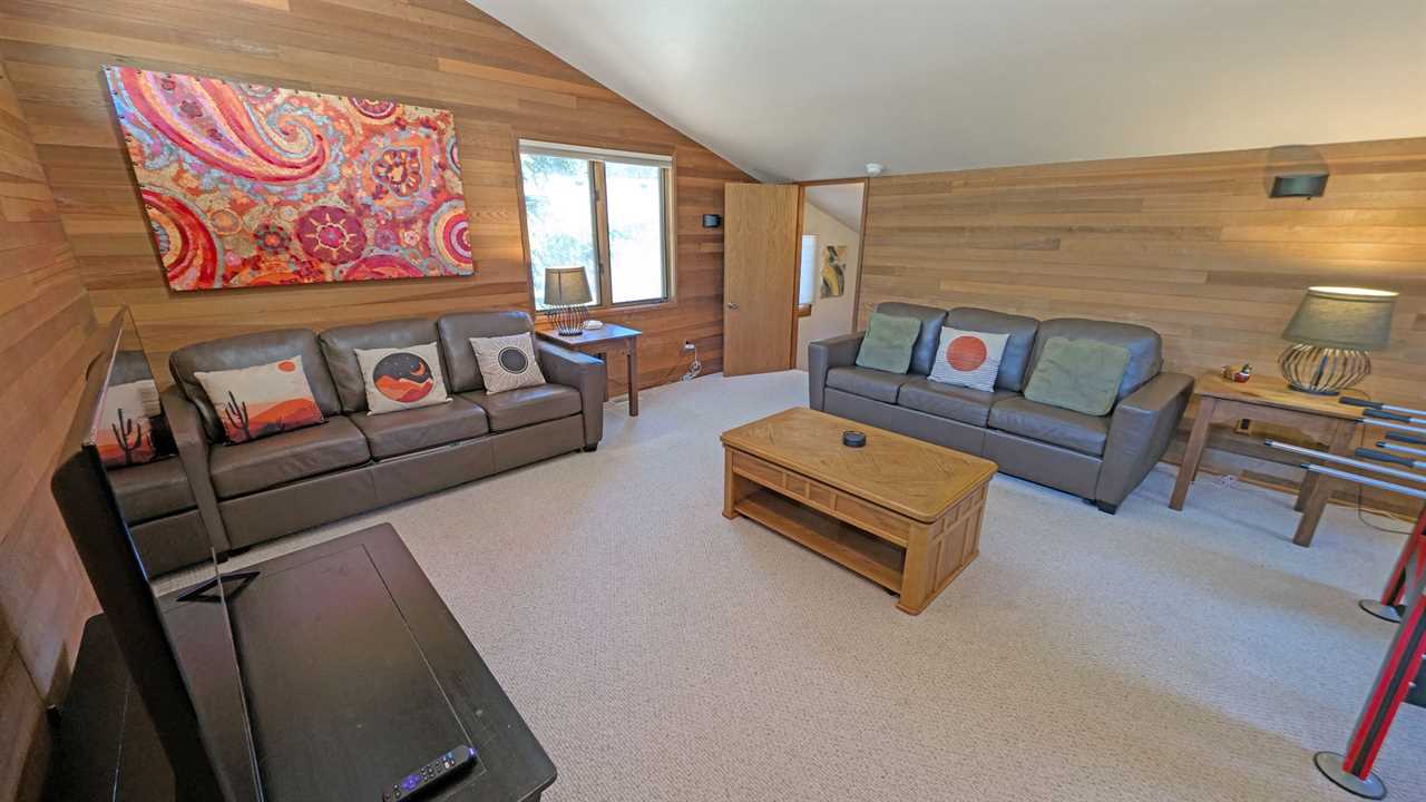 - Loft Area: Queen bed and twin bed, smart TV, and wood stove; bath with shower/tub