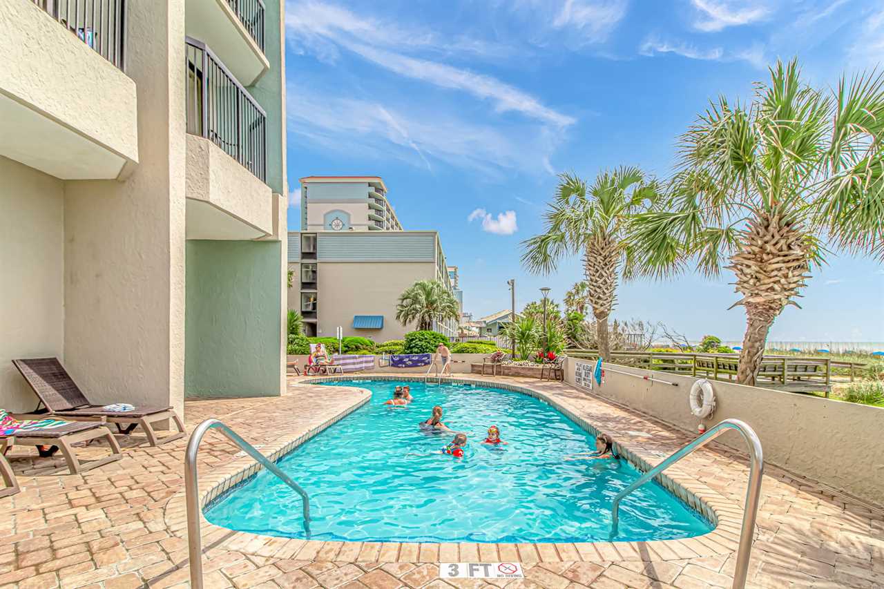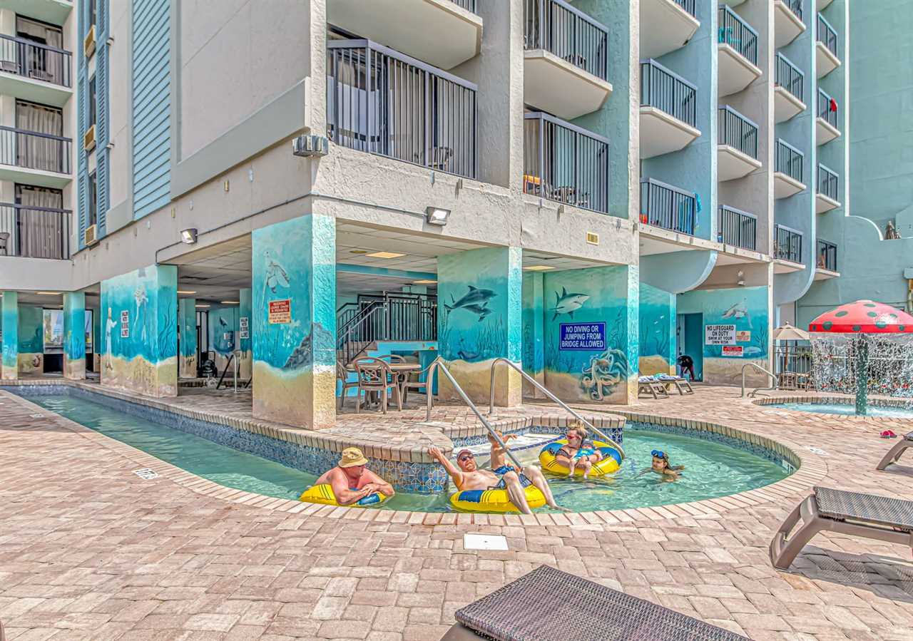 Pinnacle Oceanfront Tower is a high-rise complex located on South Ocean Blvd in Myrtle Beach, SC. Our guests will have access to only the oceanfront pool, hot tubs, and water features. While our guests cannot use the water slides, there are so many other amenities accessible by our guests! This resort is only 1 mile from the MYR International Airport and the Coastal Grand Mall. A Walmart just opened on 16th Avenue, and there are plenty of dining options close by. Our guests love the location and proximity to the attractions, shopping, dining, theaters, mini golf, go karts, golfing, fishing, and so much more! Our guests also have access to free parking and beach access.